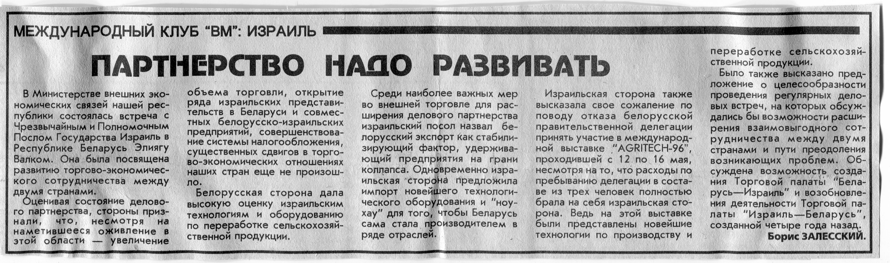 Залесский, Б. Партнерство надо развивать / Б. Залесский // Вечерний Минск. - 1996. - 12 июн.