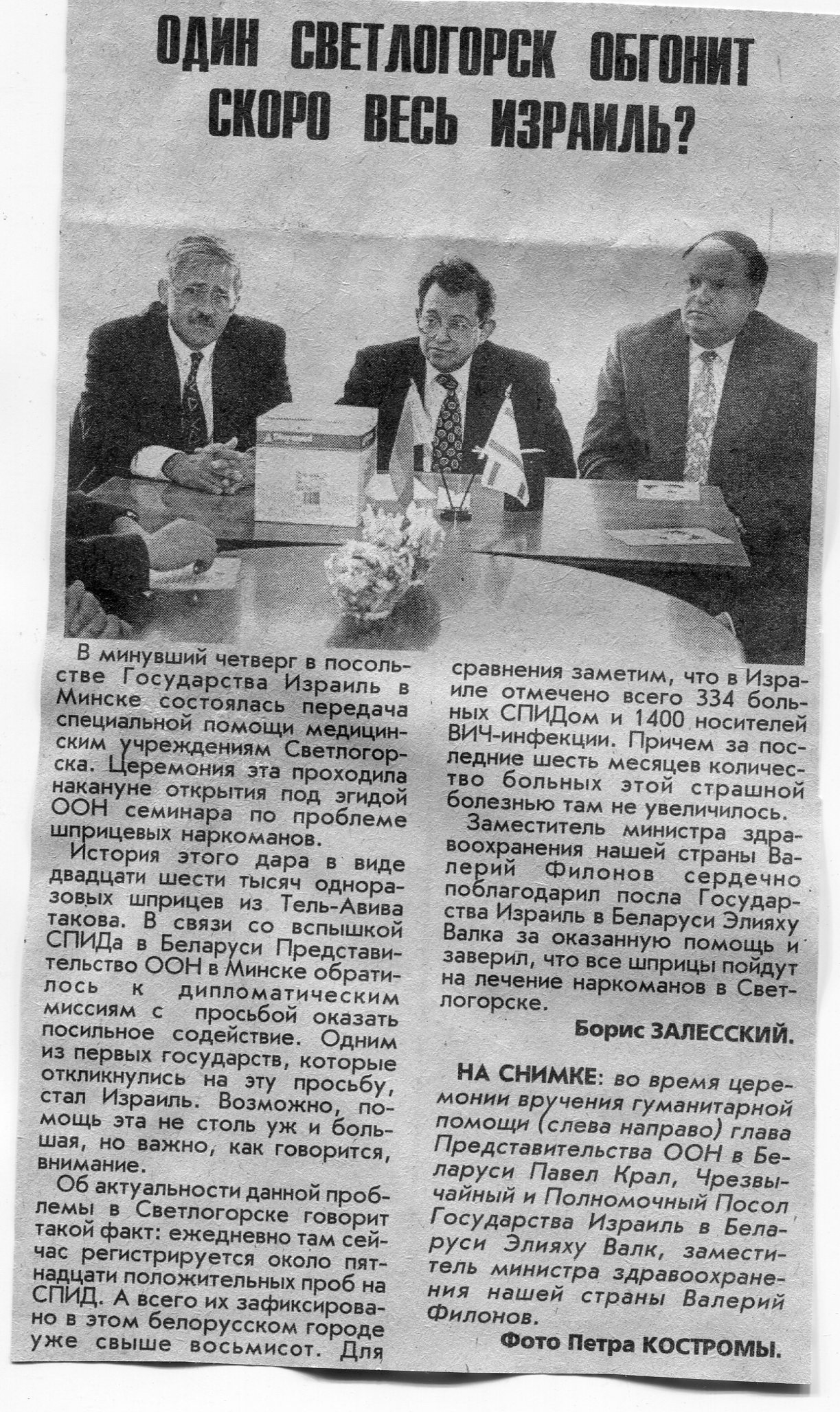 Залесский, Б. Один Светлогорск обгонит скоро весь Израиль / Б. Залесский // Вечерний Минск. - 1996. - 7 окт.