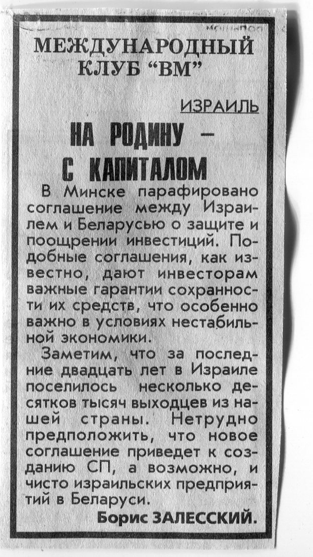 Залесский, Б. На родину - с капиталом / Б. Залесский // Вечерний Минск. - 1996. - 28 июн.