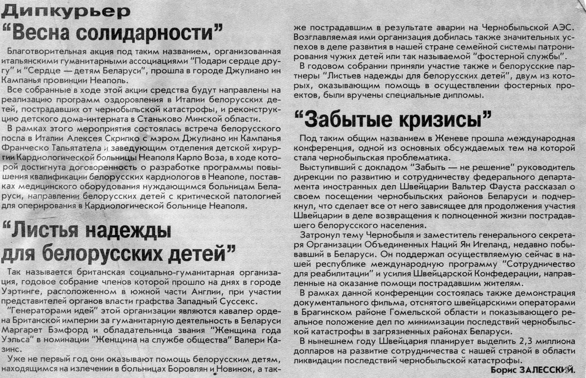 Залесский, Б. "17 лет после Чернобыля" / Б. Залесский // Вечерний Минск. - 2004. - 11 февр.