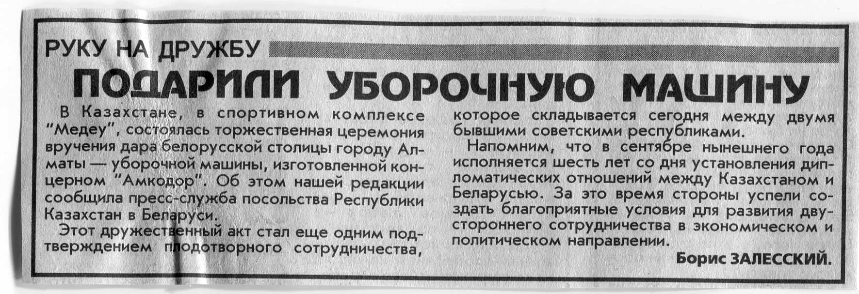 Залесский, Б. Подарили уборочную машину / Б. Залесский // Вечерний Минск. - 1998. - 14 авг.