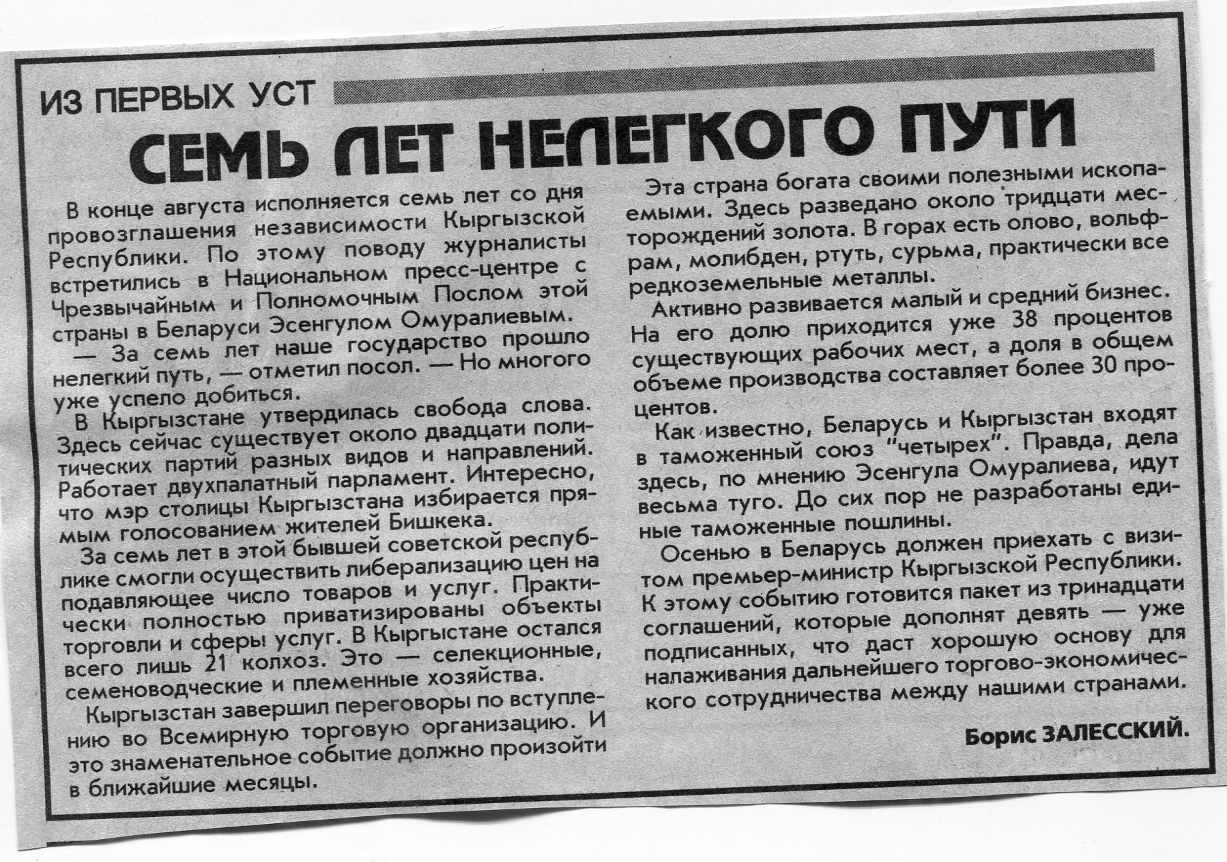Залесский, Б. Семь лет нелегкого пути / Б. Залесский // Вечерний Минск. - 1998. - 31 авг.