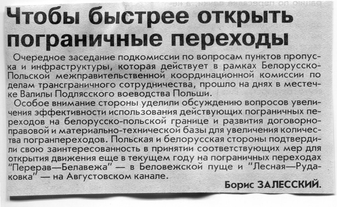 Залесский, Б. Чтобы быстрее открыть пограничные переходы / Б. Залесский // Вечерний Минск. - 2004. - 4 нояб.