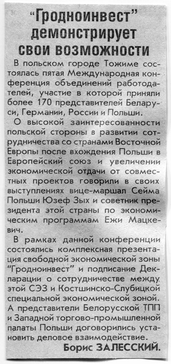 Залесский, Б. "Гродноинвест" демонстрирует свои возможности / Б. Залесский // Вечерний Минск. - 2005. - 6 янв.