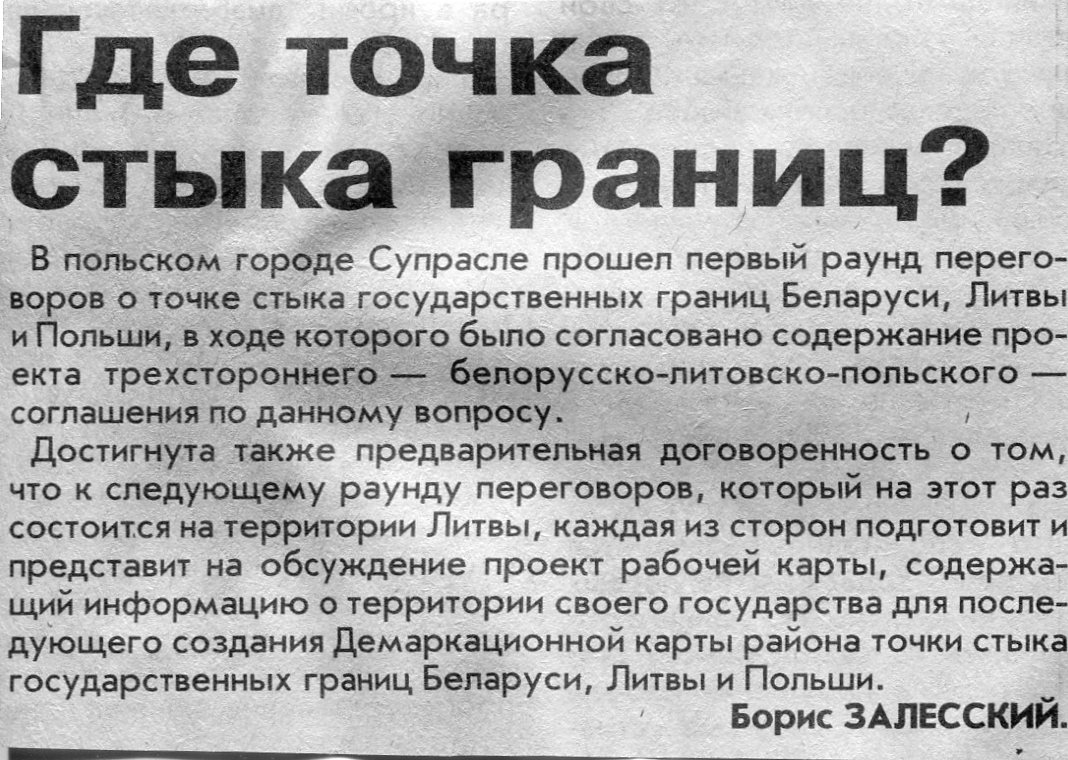 Залесский, Б. Где точка стыка границ? / Б. Залесский // Вечерний Минск. - 2003. - 14 нояб.