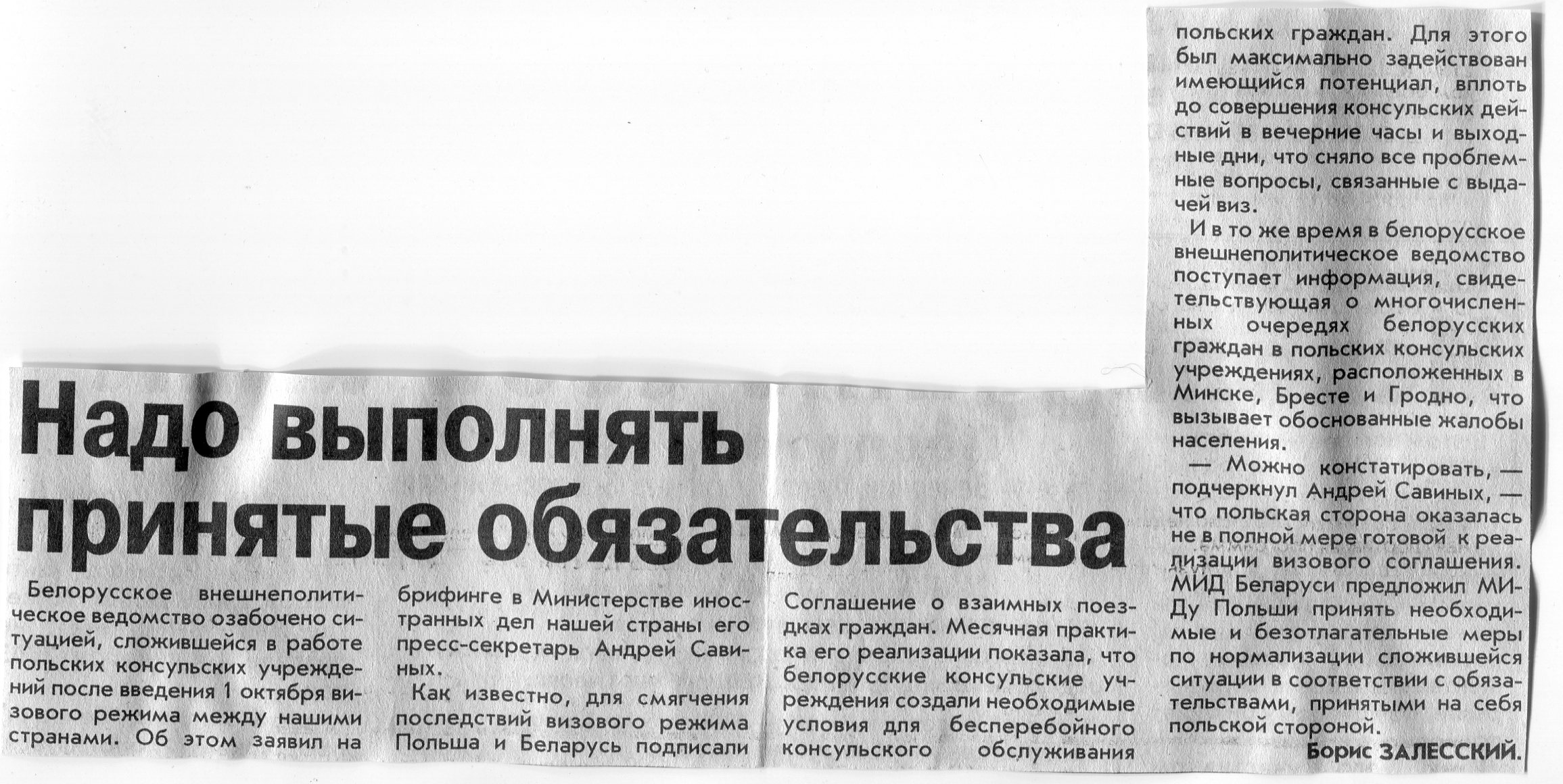 Залесский, Б. Надо выполнять принятые обязательства / Б. Залесский // Вечерний Минск. - 2003. - 6 нояб.