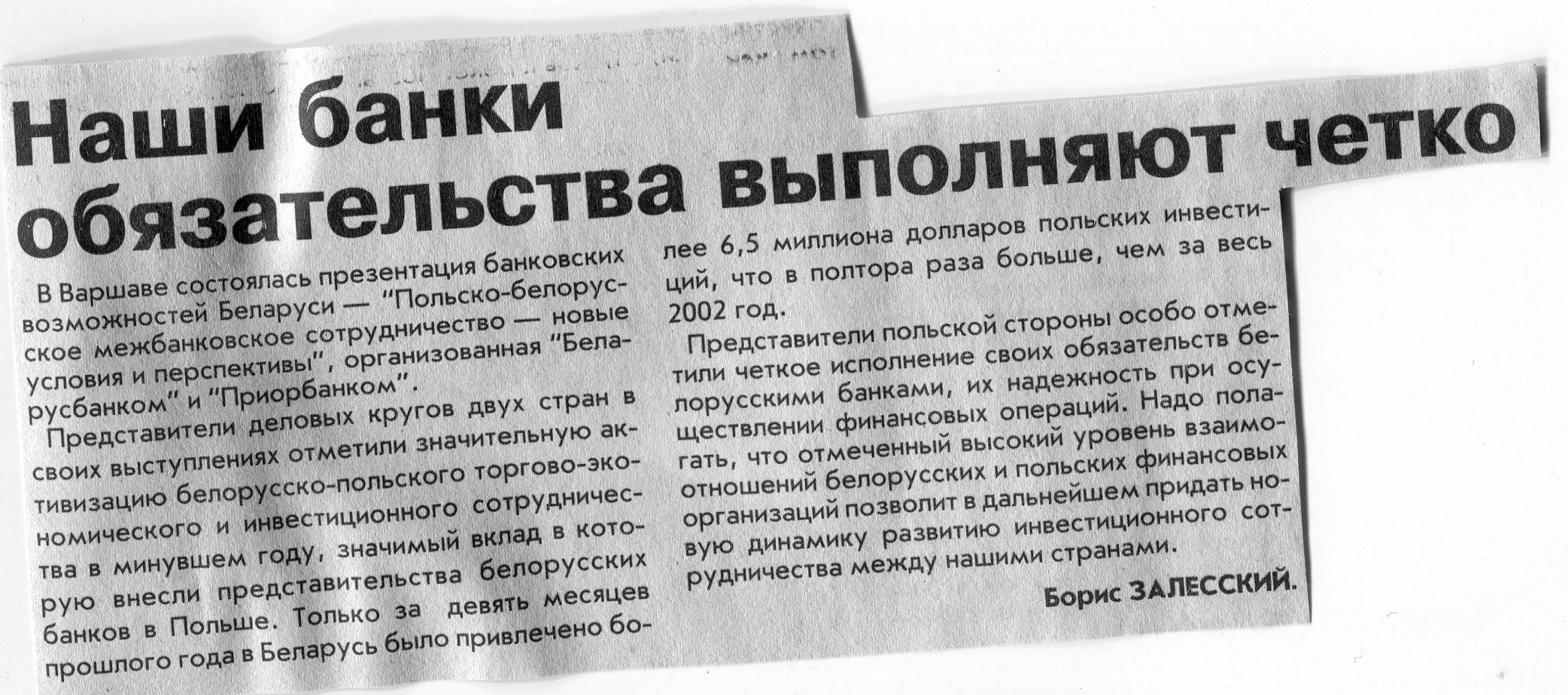 Залесский, Б. Наши банки обязательства выполняют четко / Б. Залесский // Вечерний Минск. - 2004. - 29 янв.