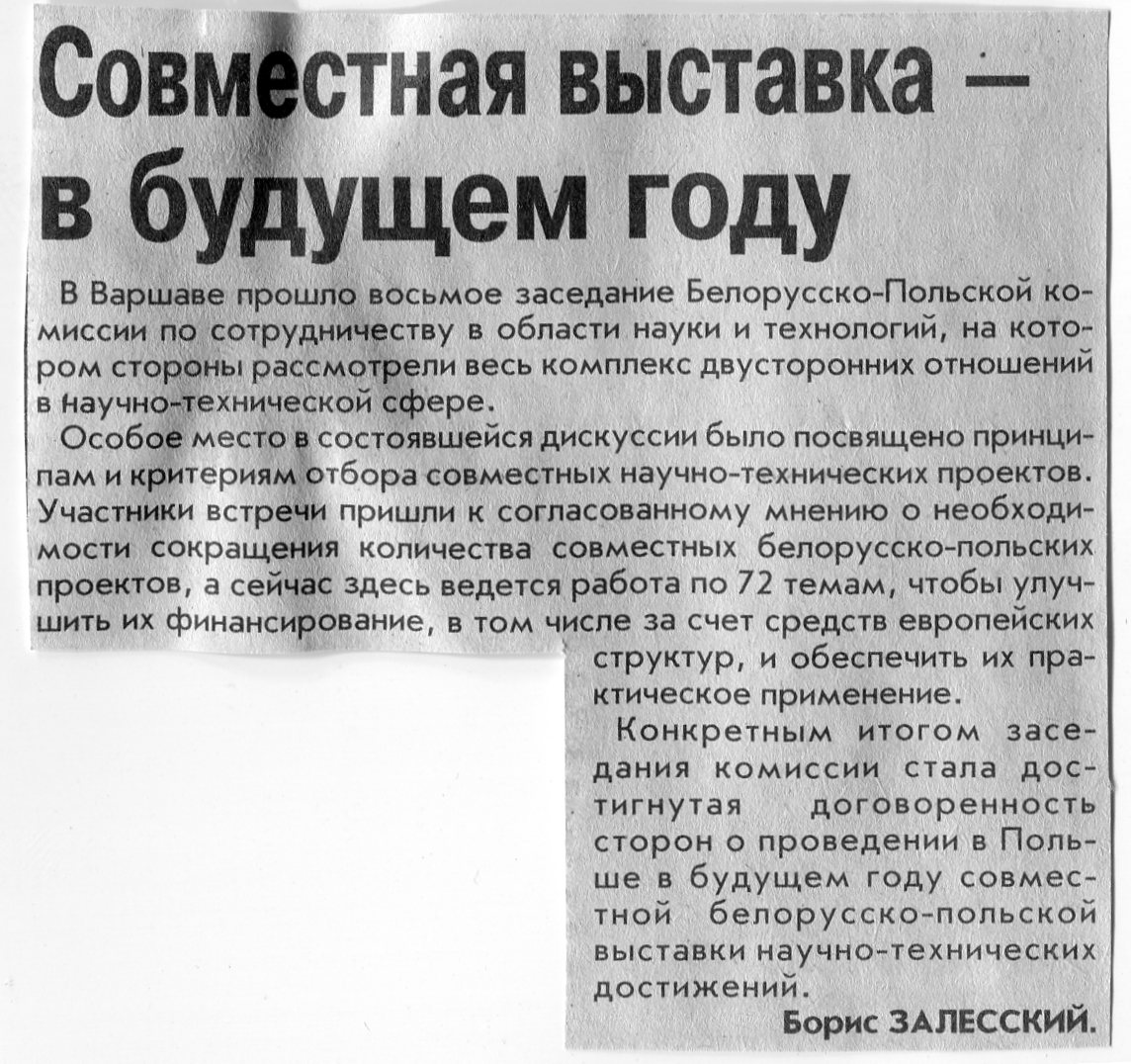 Залесский, Б. Совместная выставка - в будущем году / Б. Залесский // Вечерний Минск. - 2003. - 30 окт.
