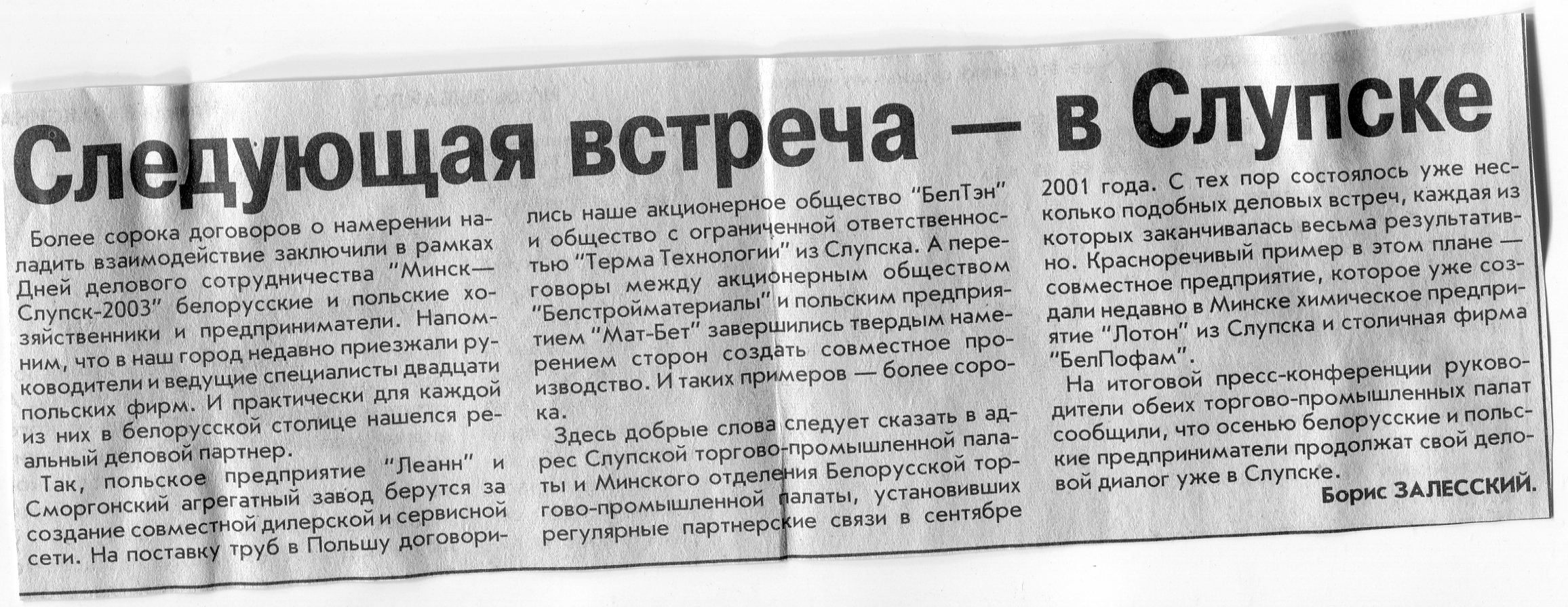 Залесский, Б. Следующая встреча - в Слупске / Б. Залесский // Вечерний Минск. - 2003. - 22 мая.