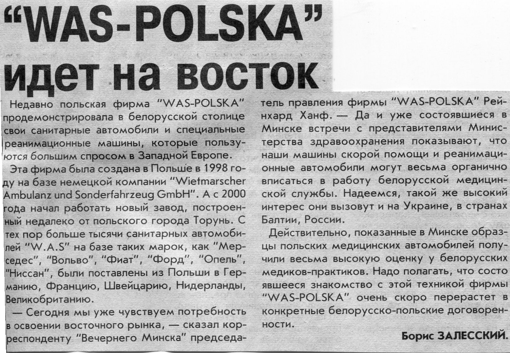 Залесский, Б. "WAS-POLSKA" идет на восток / Б. Залесский // Вечерний Минск. - 2003. - 20 мар.