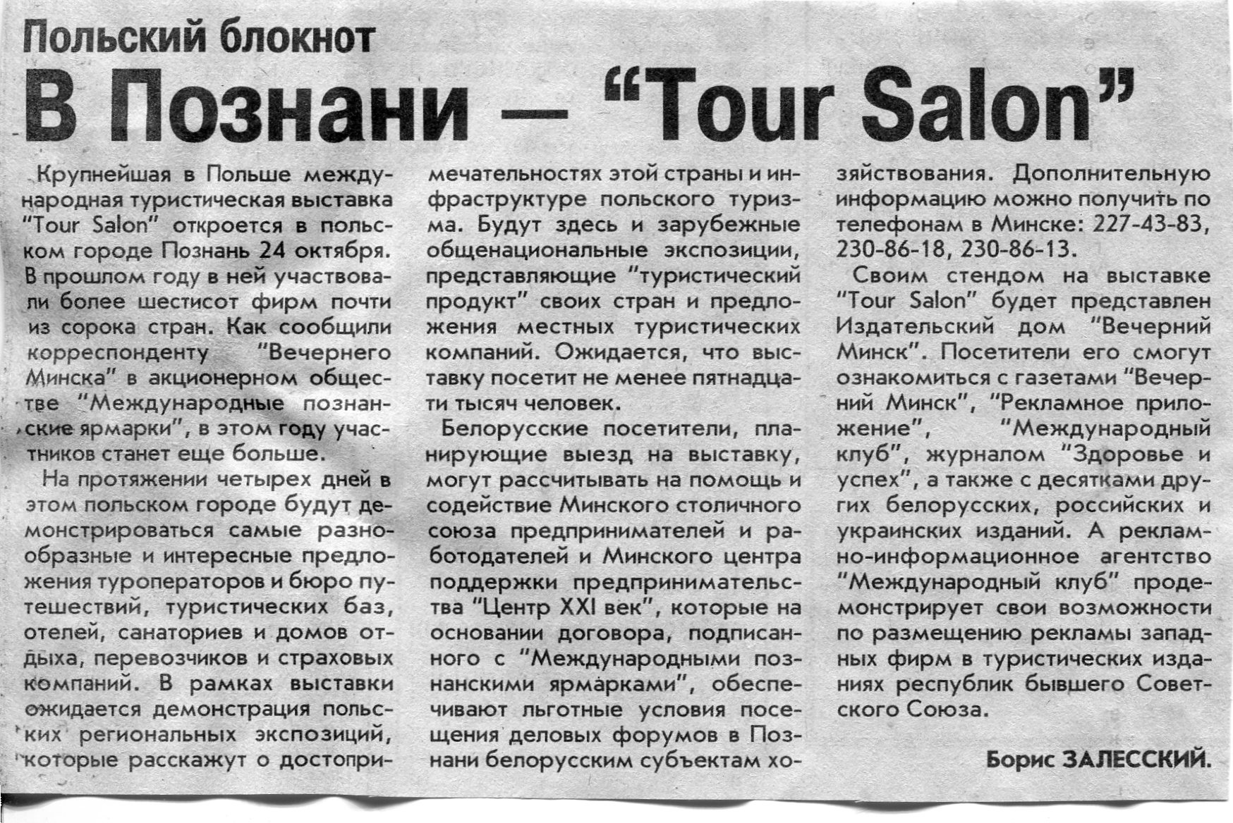 Залесский, Б. В Познани - "Tour salon" / Б. Залесский // Вечерний Минск. - 2002. - 11 окт.