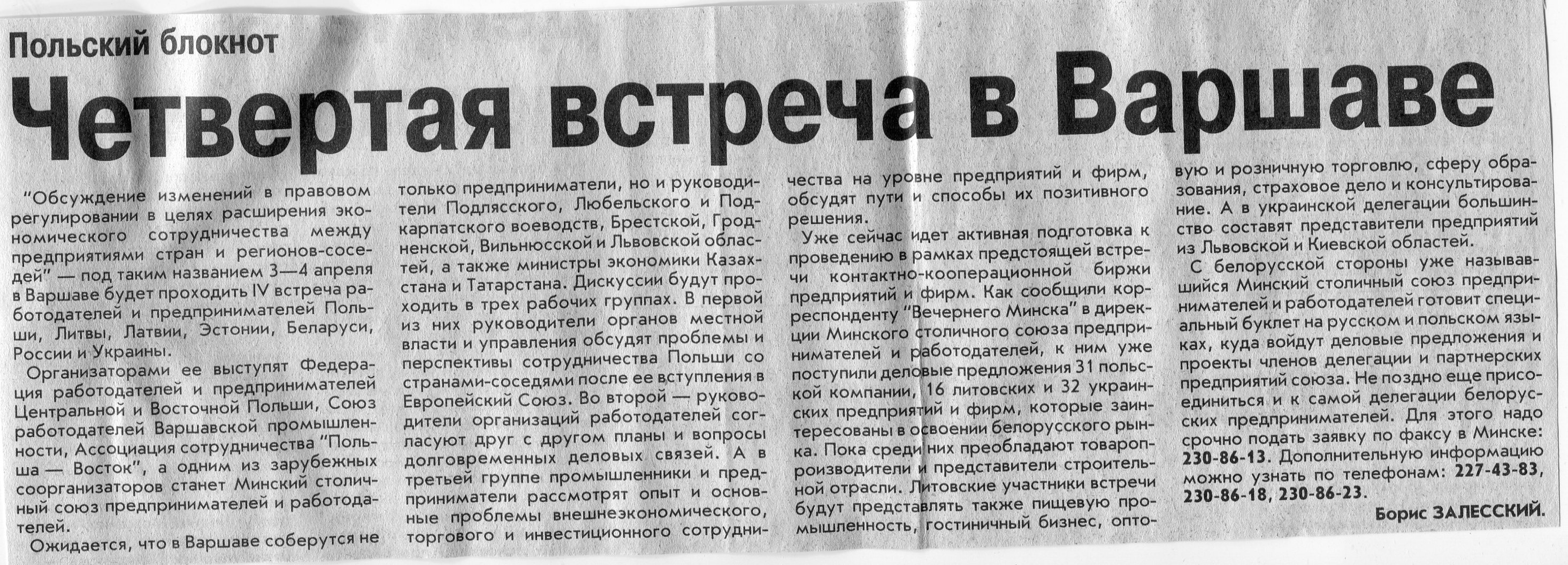 Залесский, Б. Четвертая встреча в Варшаве / Б. Залесский // Вечерний Минск. - 2003. - 19 мар.