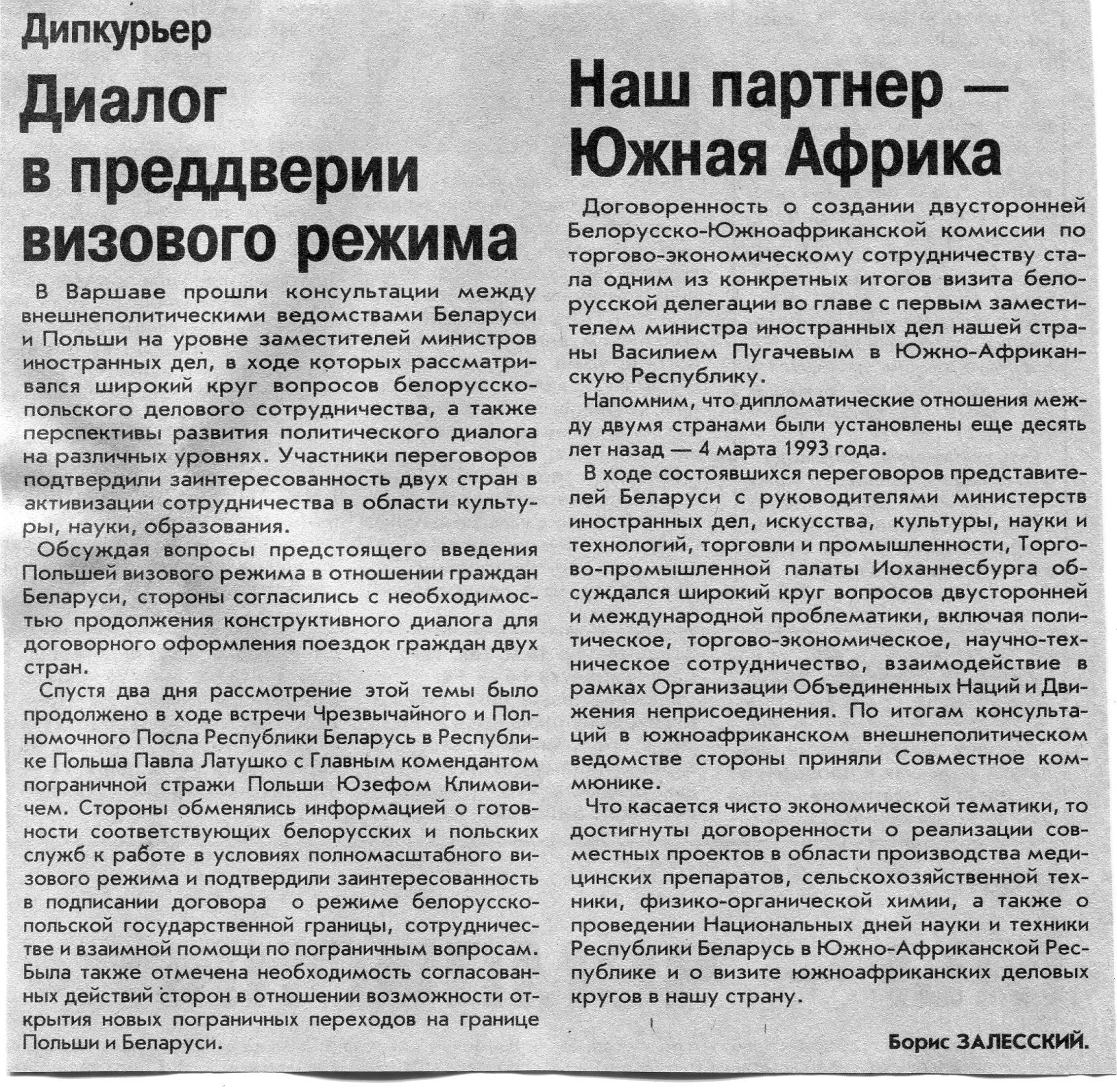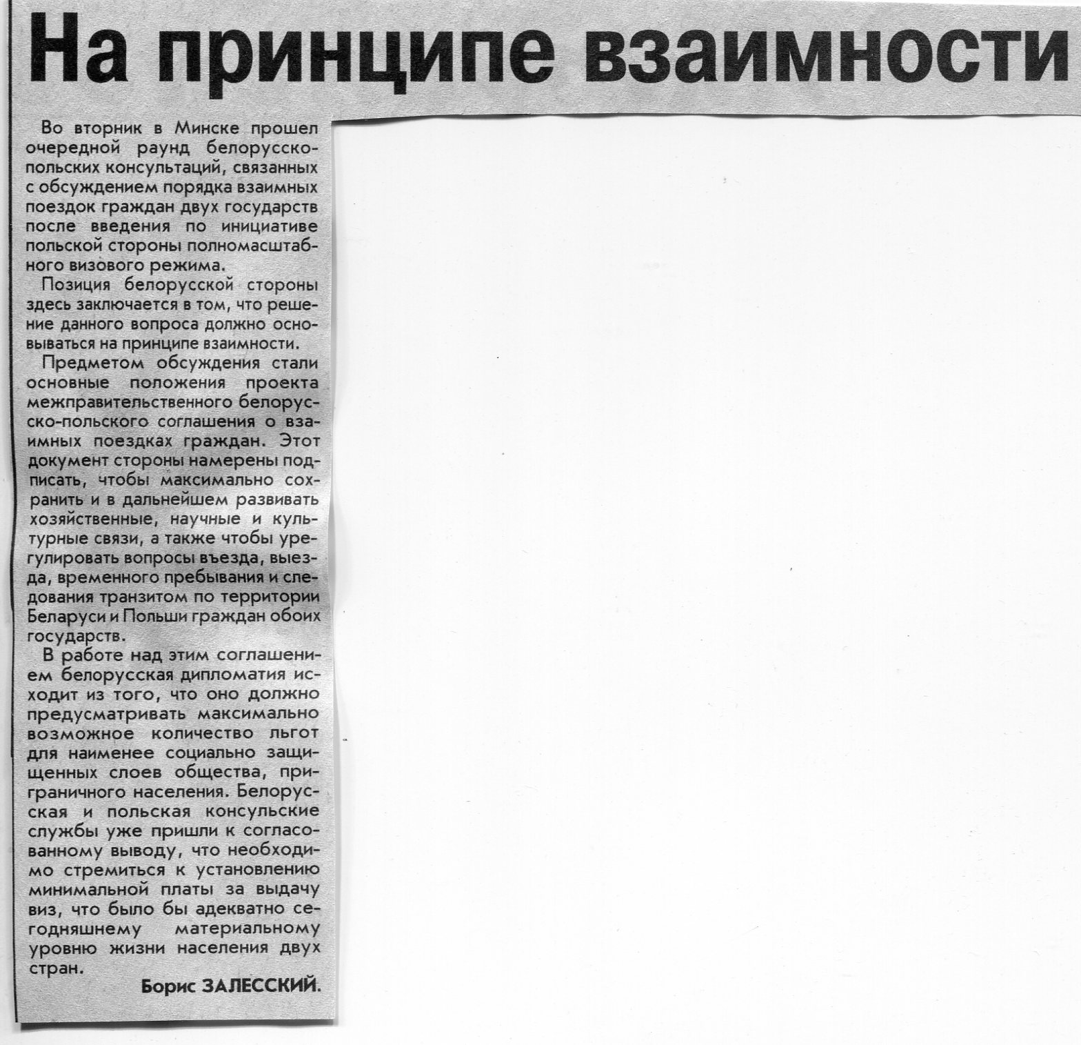 Залесский, Б. Готовимся к визовым отношениям / Б. Залесский // Вечерний Минск. - 2003. - 15 мая.