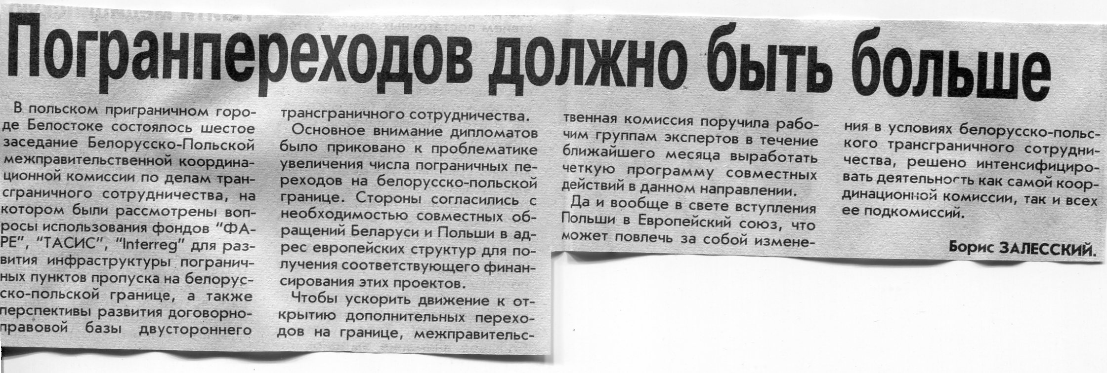 Залесский, Б. Погранпереходов должно быть больше / Б. Залесский // Вечерний Минск. - 2003. - 6 июн.