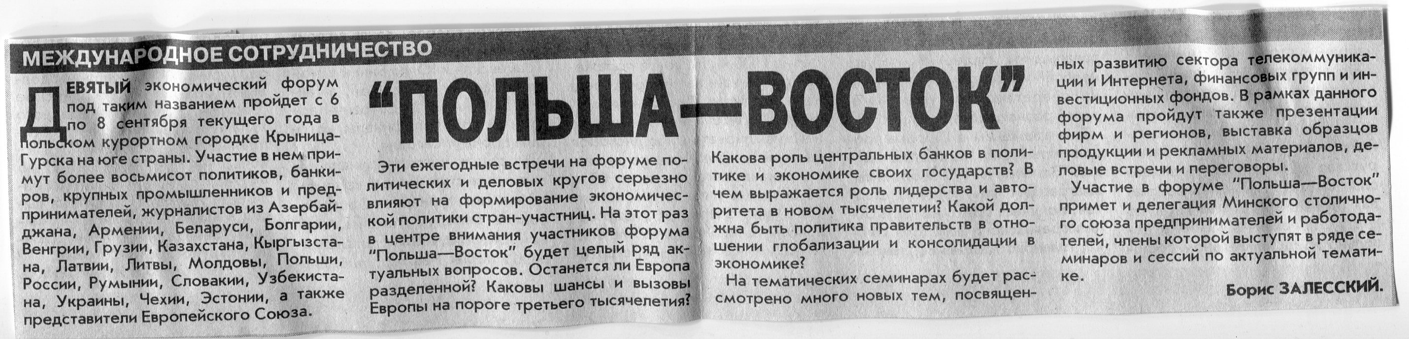 Залесский, Б. "Польша - Восток" / Б. Залесский // Вечерний Минск. - 2001. - 22 авг.