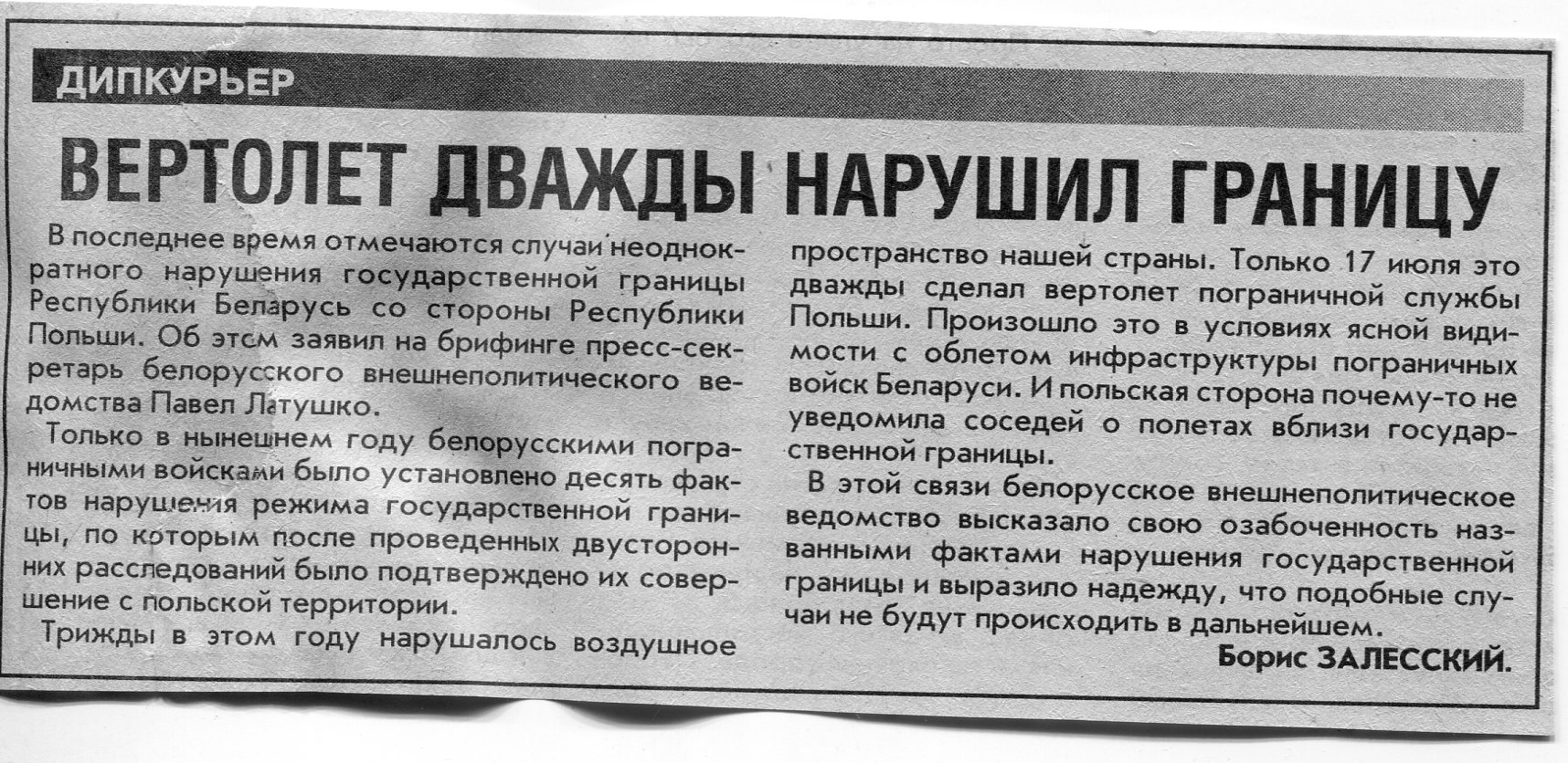 Залесский, Б. Вертолет дважды нарушил границу / Б. Залесский // Вечерний Минск. - 2001. - 23 июл.