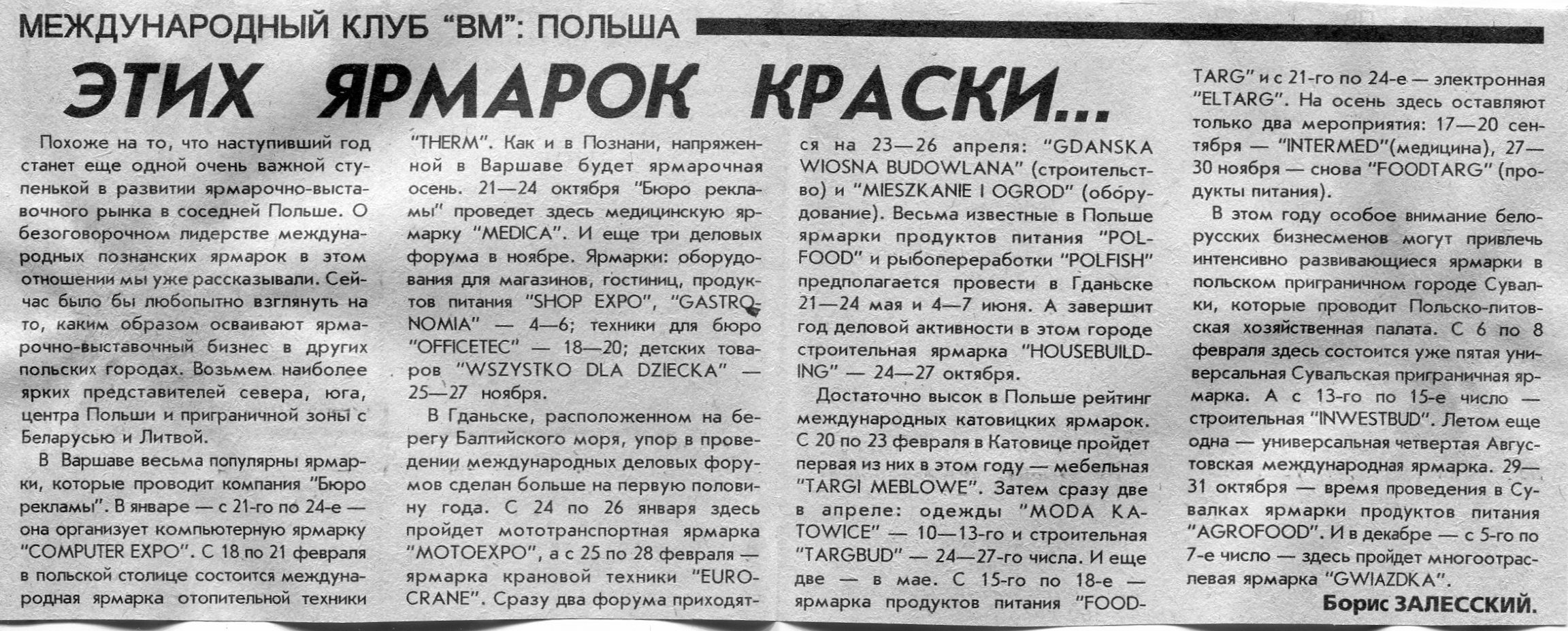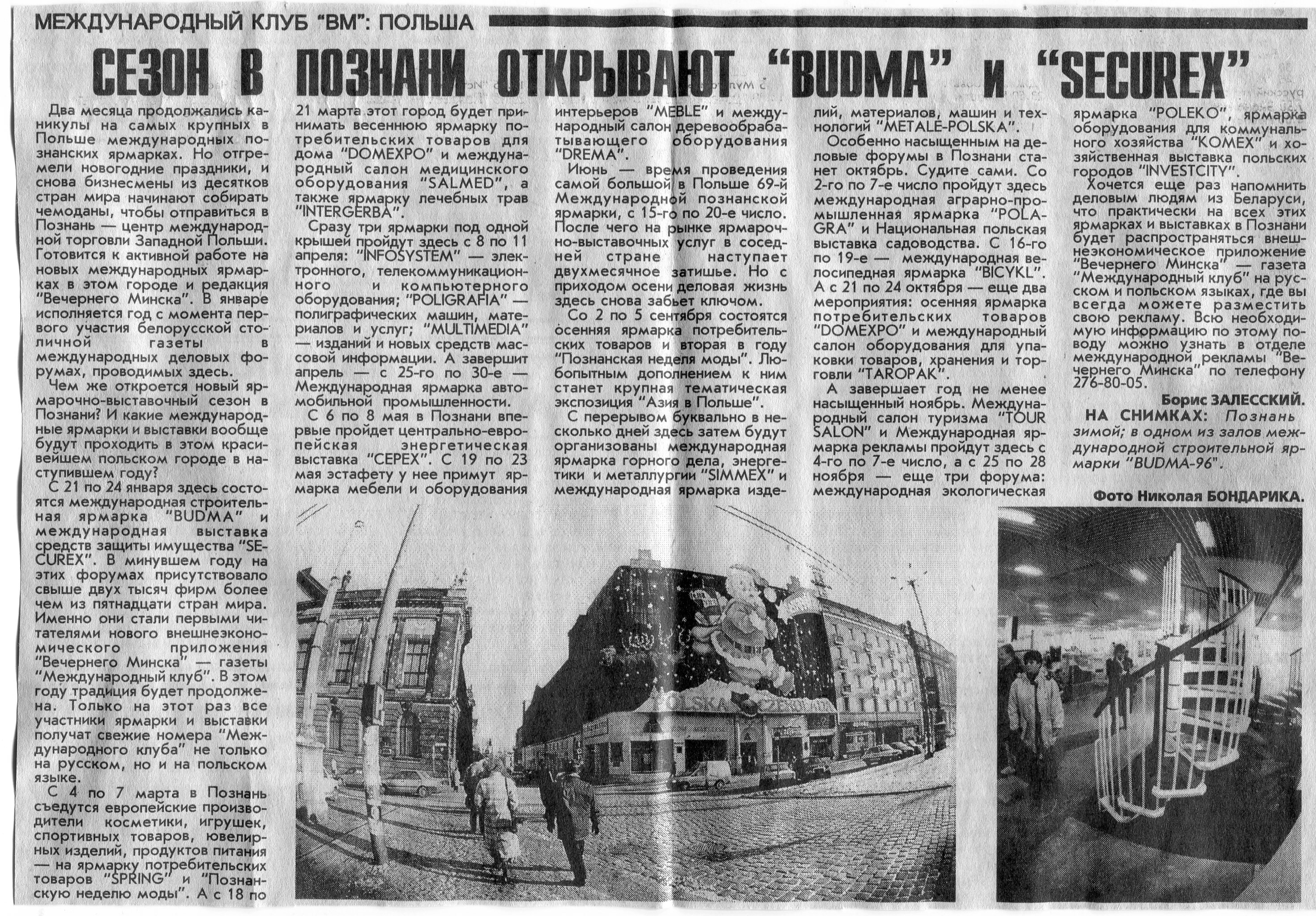 Залесский, Б. Сезон в Познани открывают "Budma" и "Securex" / Б. Залесский // Вечерний Минск. - 1997. - 10 янв.