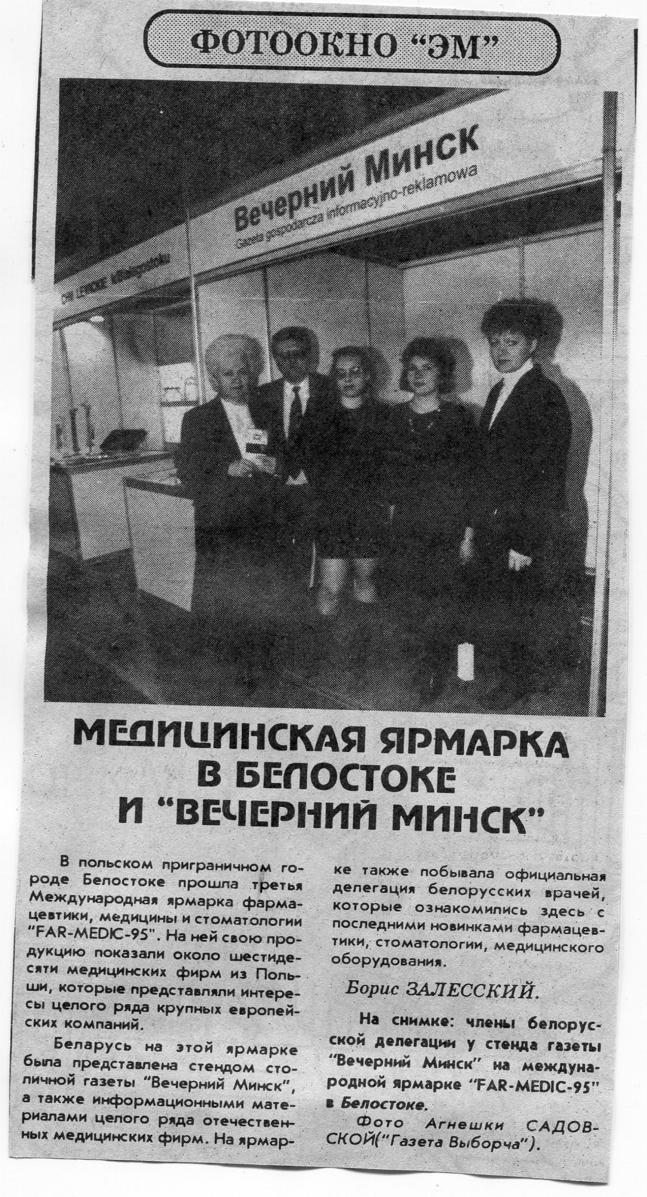 Залесский, Б. Медицинская ярмарка в Белостоке и "Вечерний Минск" // Экология Минска. - 1995. - 21 нояб.