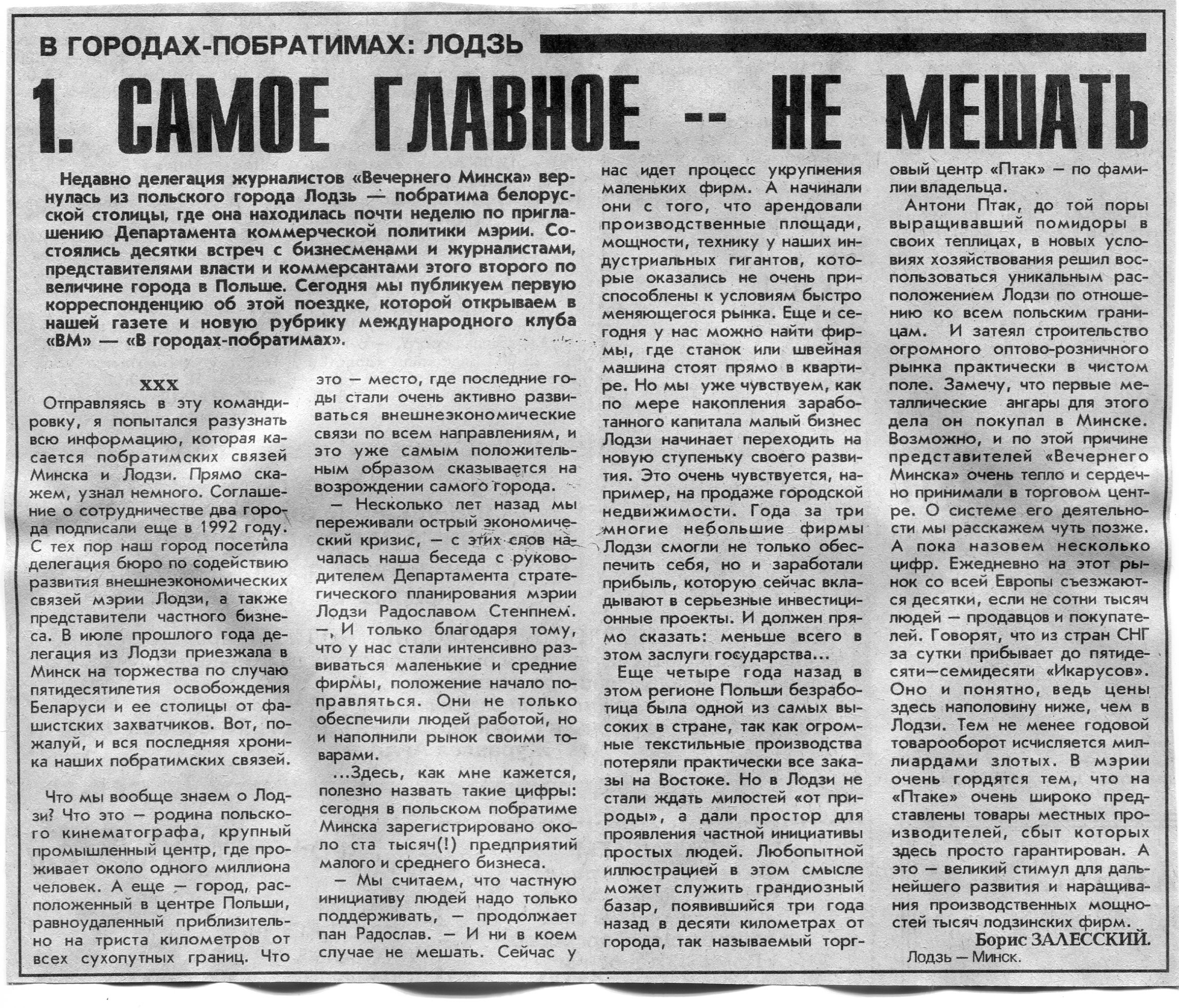 Залесский, Б. 1. Самое главное - не мешать / Б. Залесский // Вечерний Минск. - 1995. - 16 нояб.