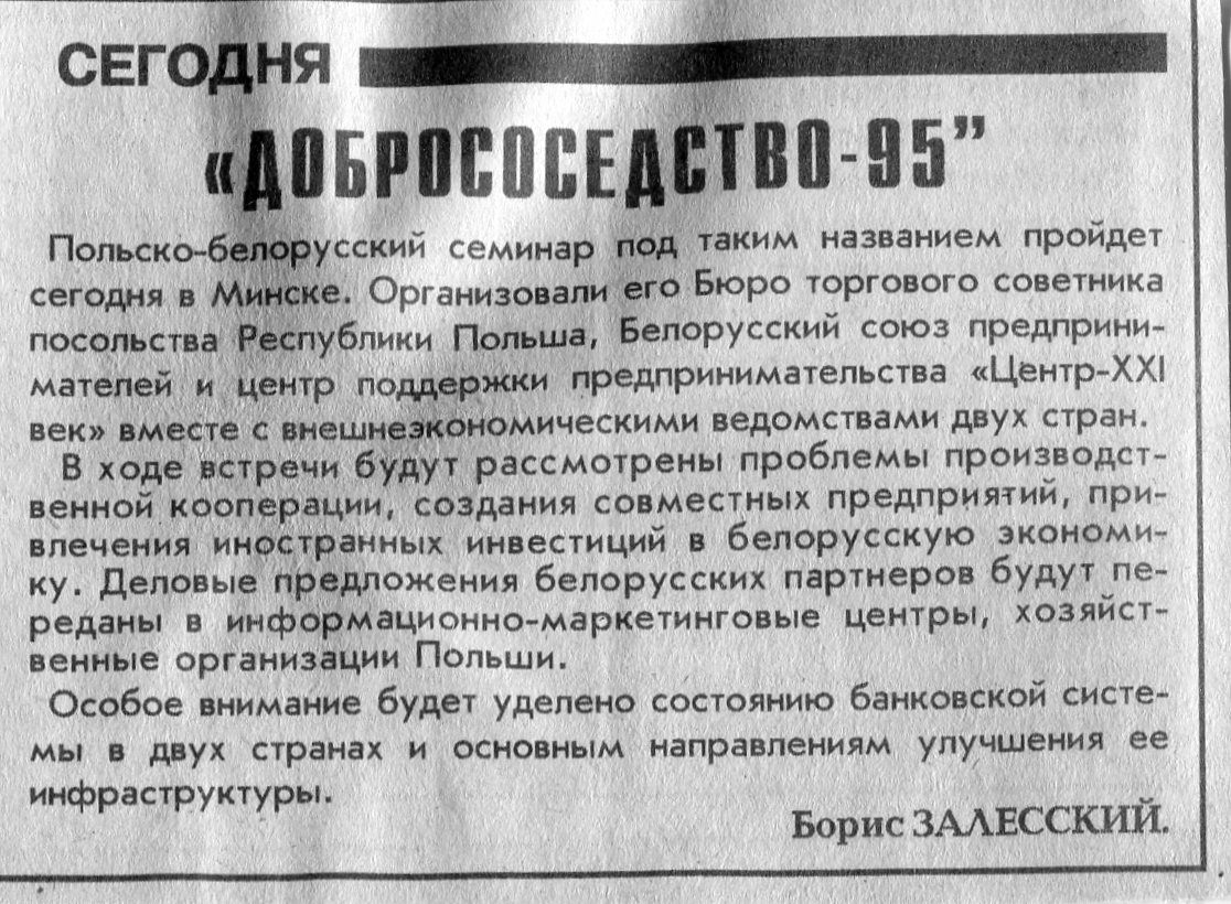 Залесский, Б. "Добрососедство-95" / Б. Залесский // Вечерний Минск. - 1995. - 15 дек.