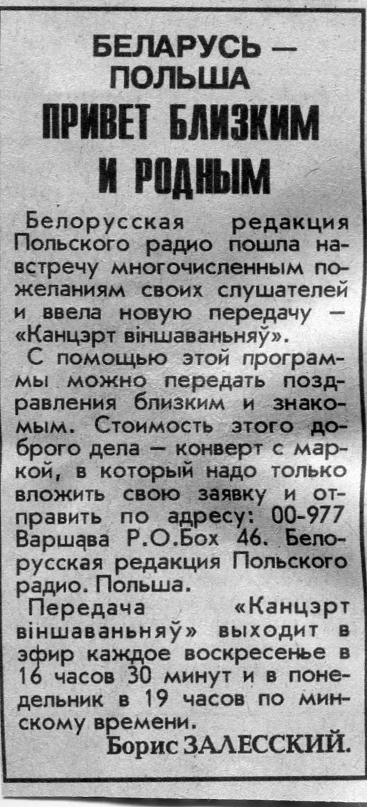 Залесский, Б. Привет близким и родным / Б. Залесский // Вечерний Минск. - 1995. - 1 сент.