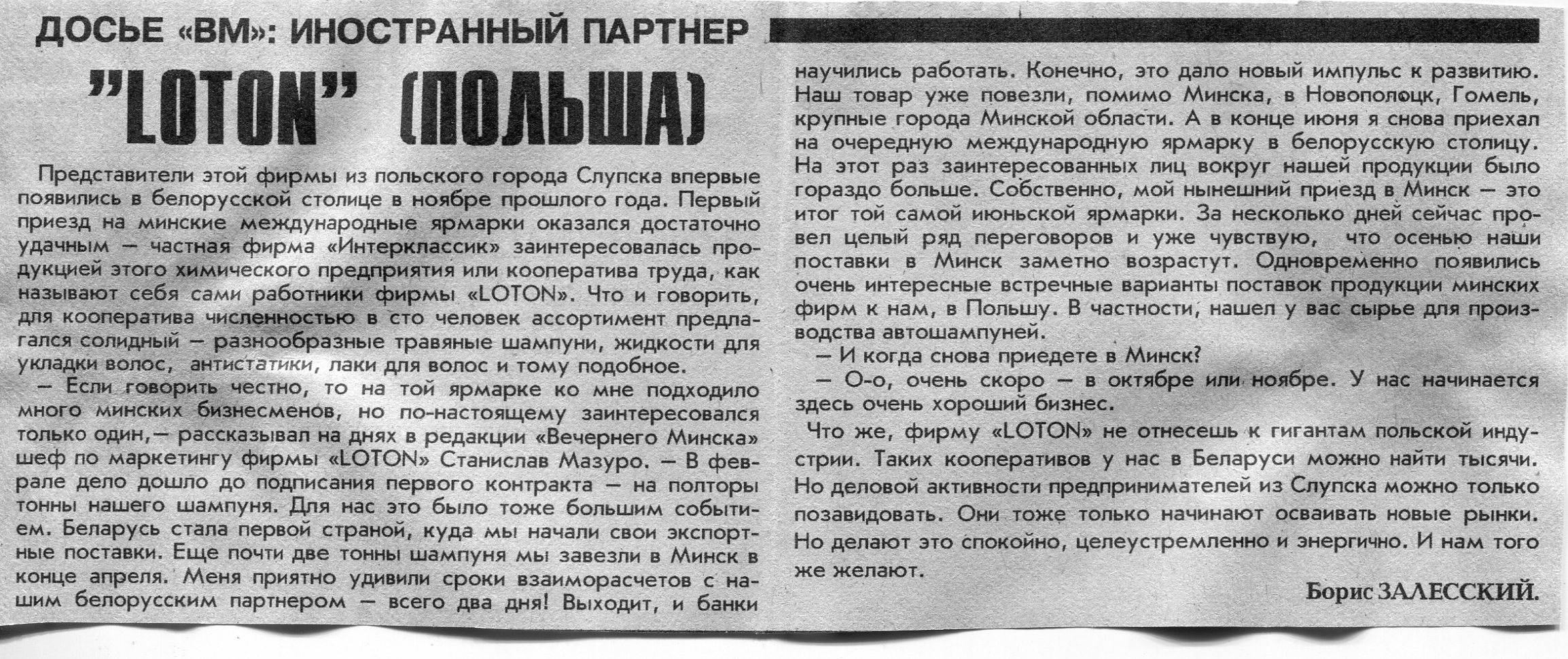 Залесский, Б. "Loton" (Польша) / Б. Залесский // Вечерний Минск. - 1995. - 29 авг.