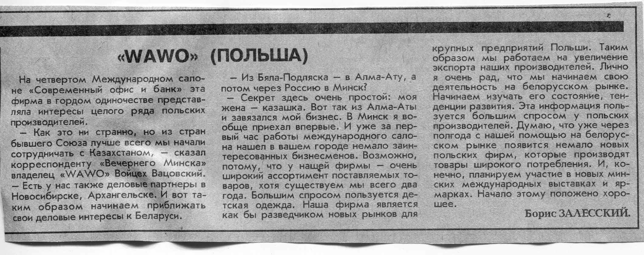Залесский, Б. "Wawo" (Польша) / Б. Залесский // Вечерний Минск. - 1995. - 15 сент.