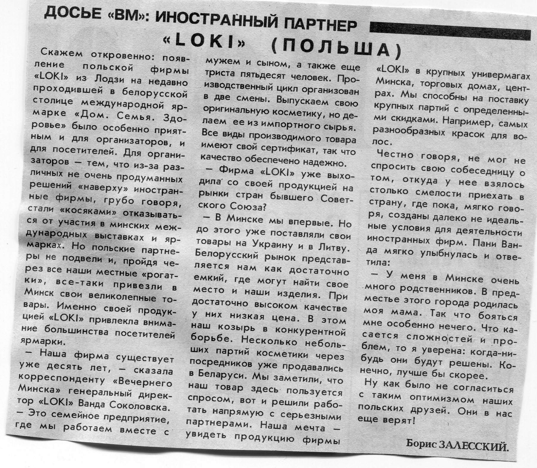 Залесский, Б. "Loki" (Польша) / Б. Залесский // Вечерний Минск. - 1995. - 21 июн.