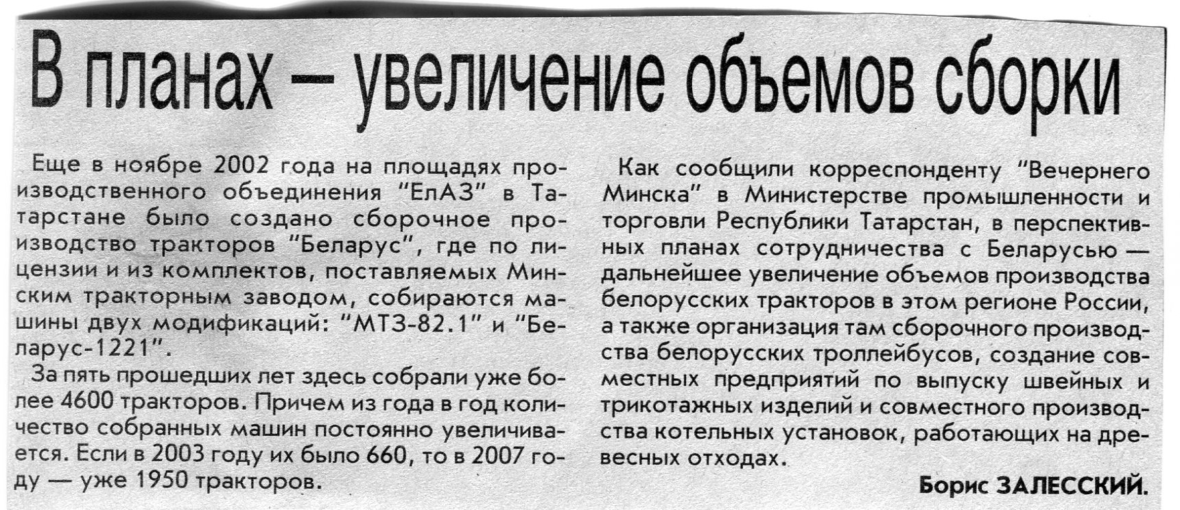Залесский, Б. В планах - увеличение объемов сборки / Б. Залесский // Вечерний Минск. - 2008. - 7 февр.