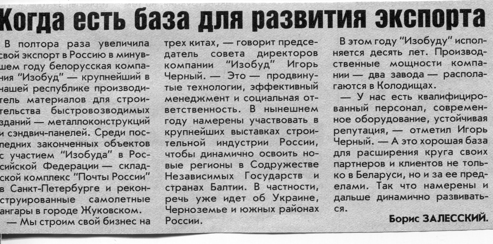 Залесский, Б. Когда есть база для развития экспорта / Б. Залесский // Вечерний Минск. - 2008. - 6 мар.