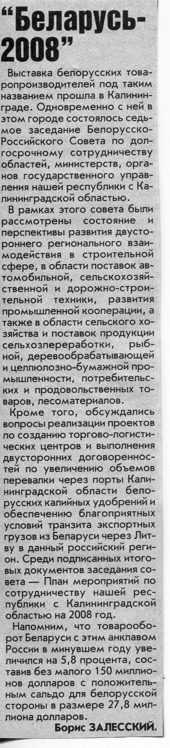 Залесский, Б. "Беларусь-2008" / Б. Залесский // Вечерний Минск. - 2008. - 6 мар.