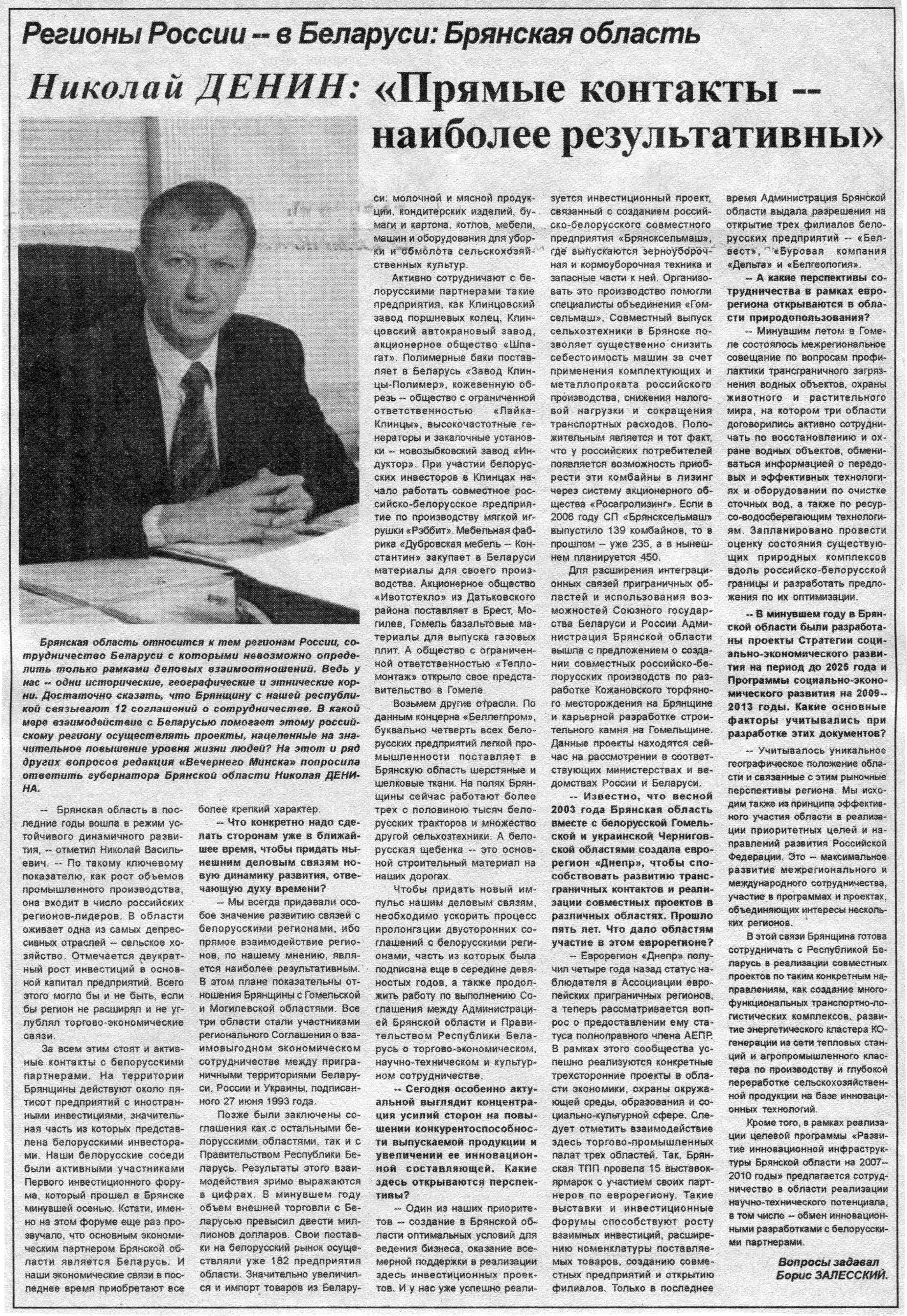 Залесский, Б. Николай Денин: "Прямые контакты - наиболее результативны" / Б. Залесский // Вечерний Минск. - 2008. - 13 мар.