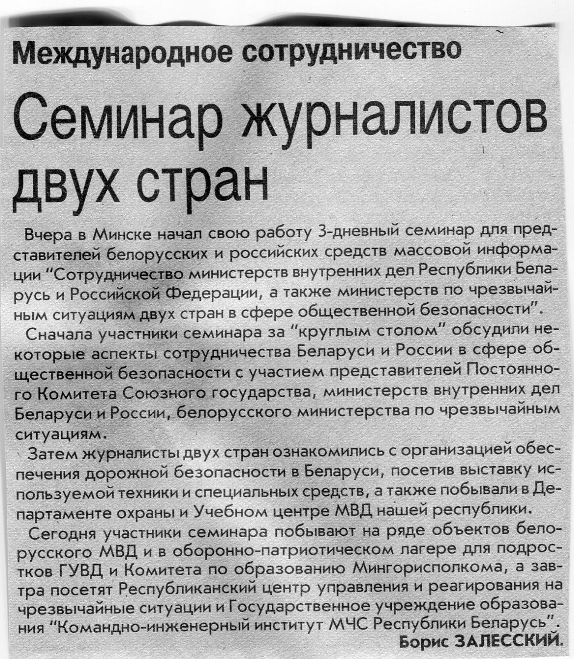Залесский, Б. Семинар журналистов двух стран / Б. Залесский // Вечерний Минск. - 2007. - 20 июн.