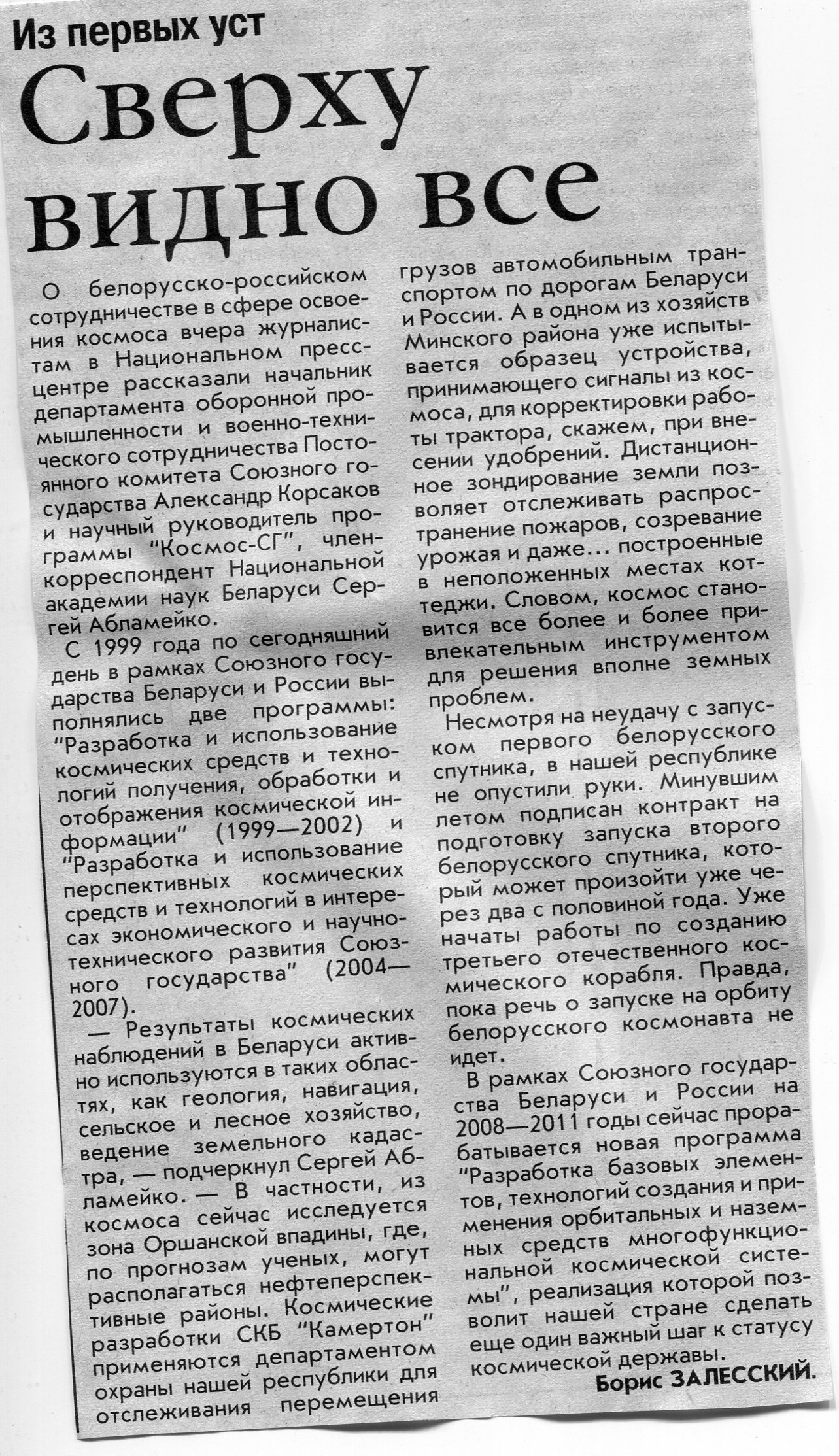 Залесский, Б. Сверху видно все / Б. Залесский // Вечерний Минск. - 2007. - 17 окт.