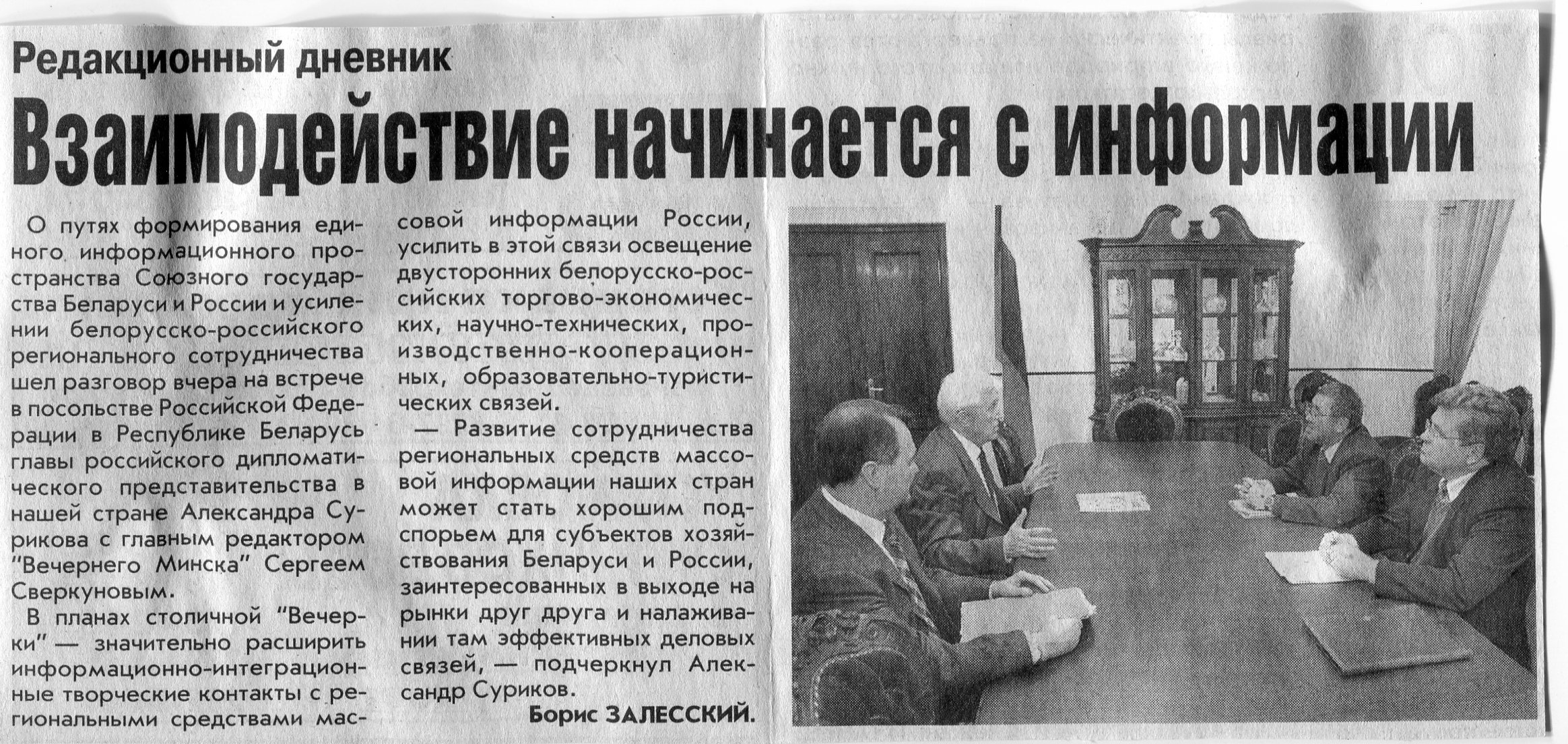 Залесский, Б. Взаимодействие начинается с информации / Б. Залесский // Вечерний Минск. - 2007. - 17 окт.