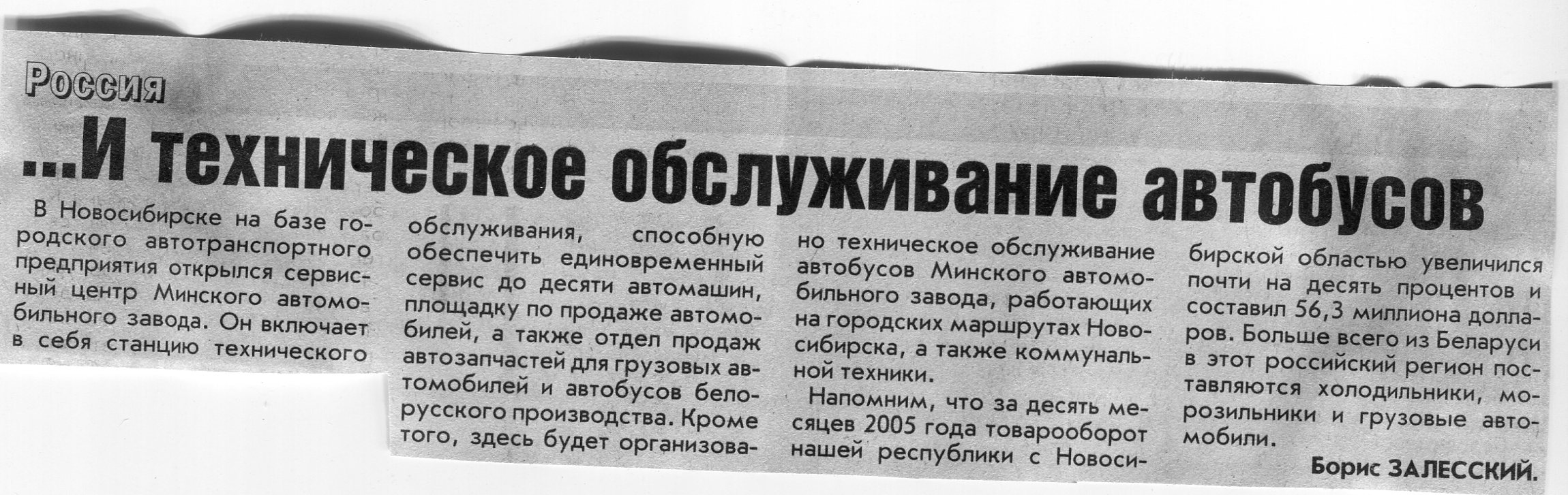 Залесский, Б. ... И техническое обслуживание автобусов / Б. Залесский // Вечерний Минск. - 2006. - 16 янв.