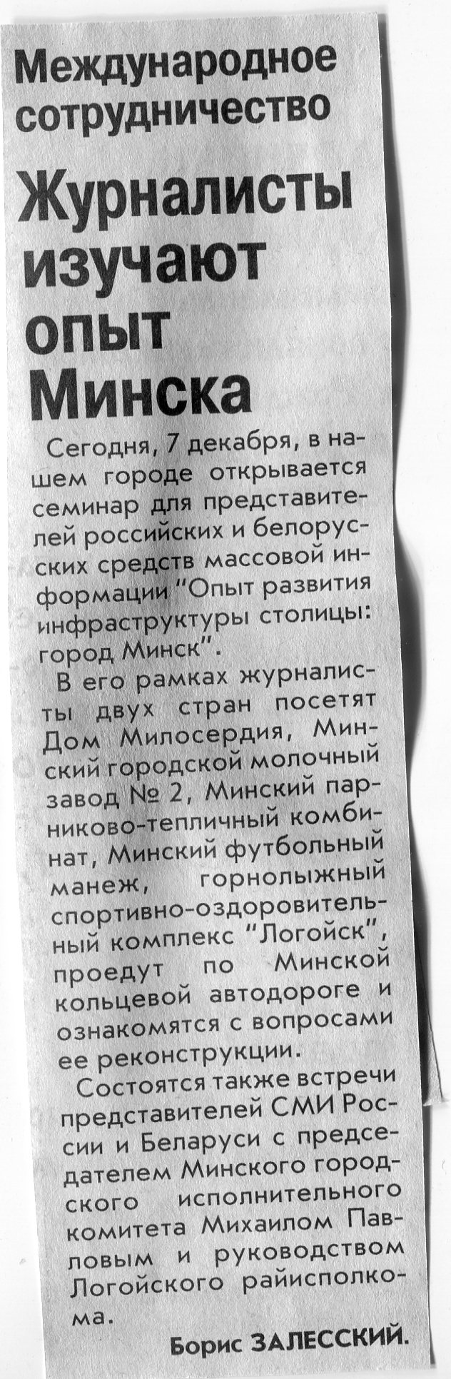 Залесский, Б. Журналисты изучают опыт Минска / Б. Залесский // Вечерний Минск. - 2004. - 7 дек.