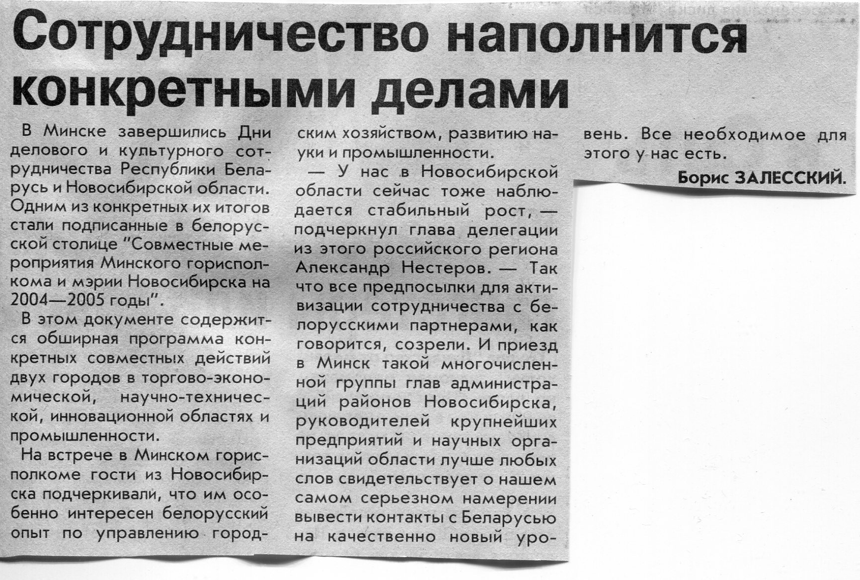Залесский, Б. Сотрудничество наполнится конкретными делами / Б. Залесский // Вечерний Минск. - 2004. - 29 нояб.