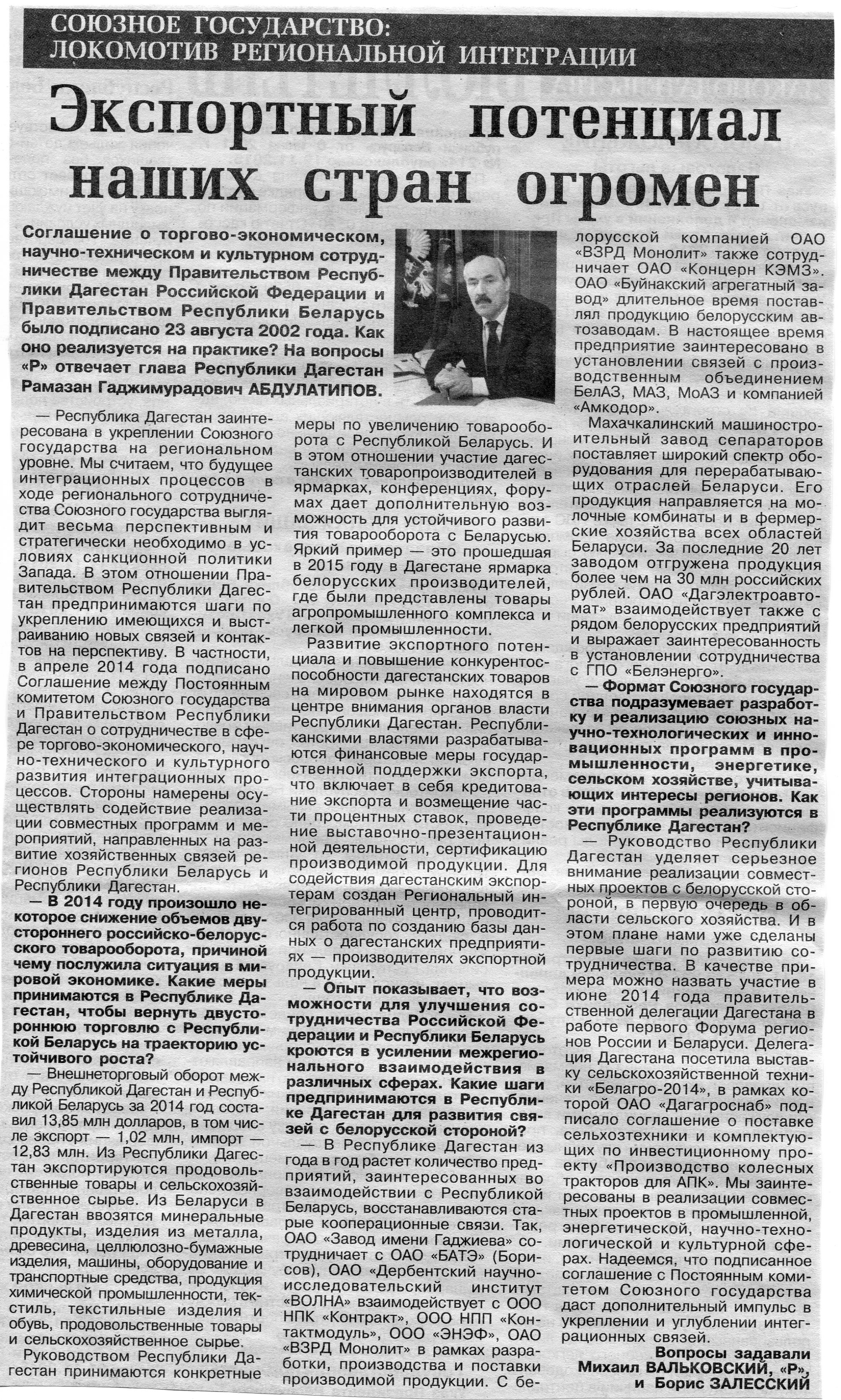 Залесский, Б. Союзный дизель для наших машин / Б. Залесский, М. Вальковский // Республика. – 2016. – 27 янв. – С. 3.