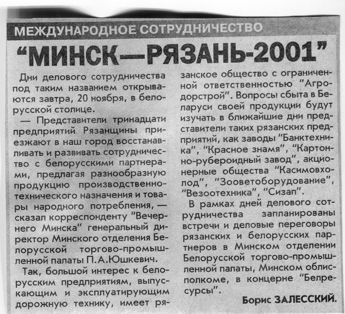 Залесский, Б. "Минск - Рязань - 2001" / Б. Залесский // Вечерний Минск. - 2001. - 19 нояб.
