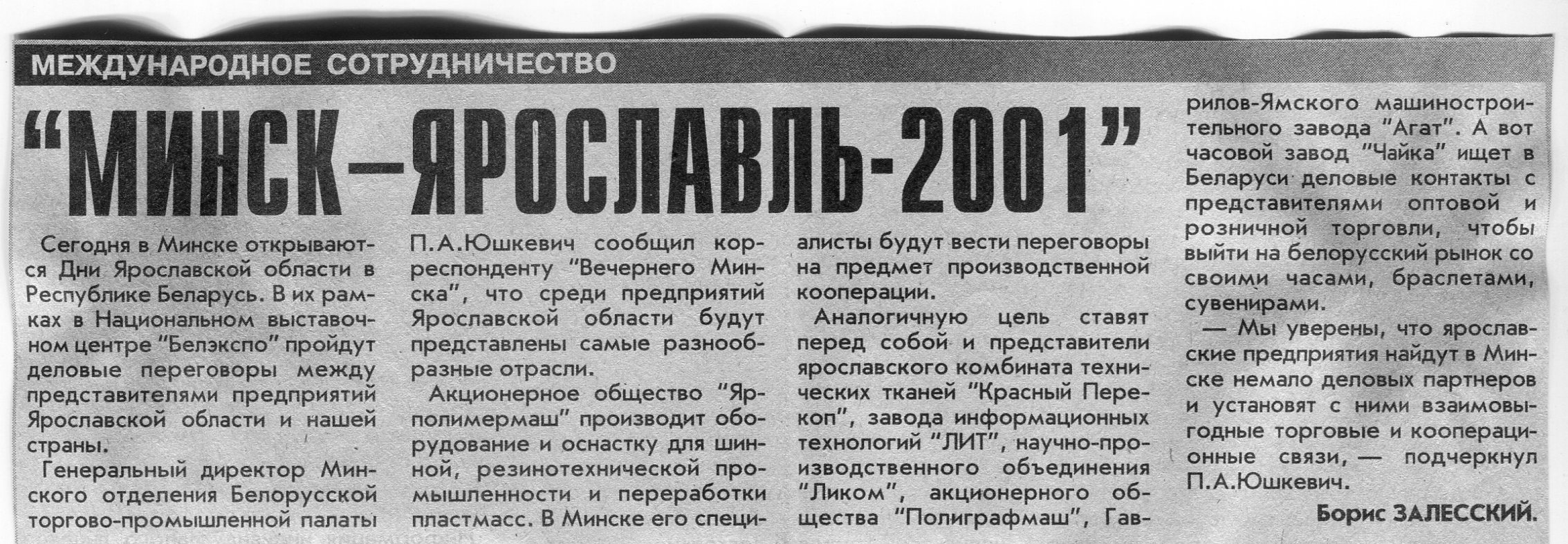 Залесский, Б. "Минск - Ярославль - 2001" / Б. Залесский // Вечерний Минск. - 2001. - 12 сент.