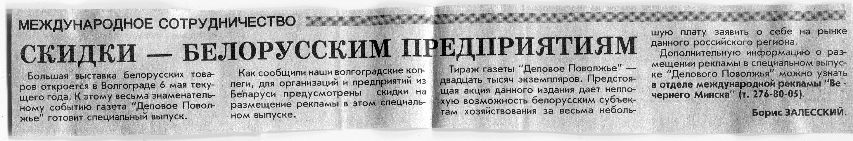 Залесский, Б. Скидки - белорусским предприятиям / Б. Залесский // Вечерний Минск. - 1999. - 13 апр.