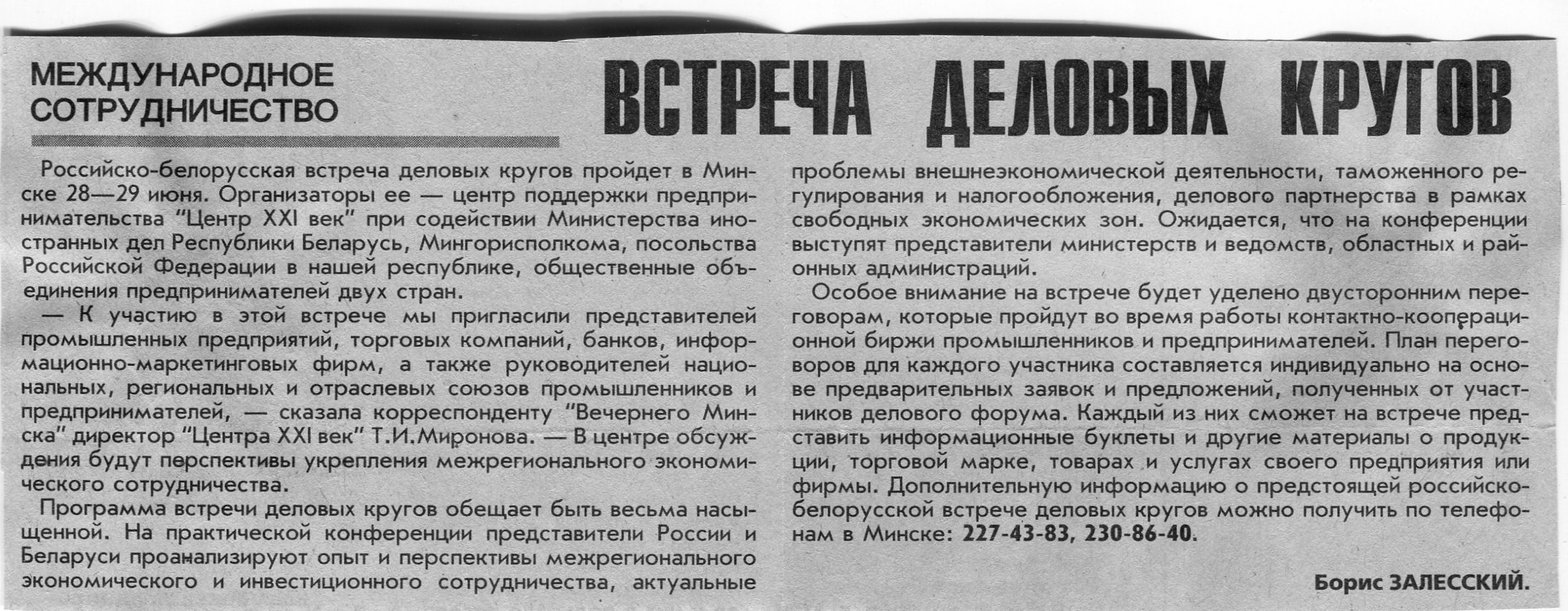 Залесский, Б. Встреча деловых кругов / Б. Залесский // Вечерний Минск. - 2000. - 16 июн.