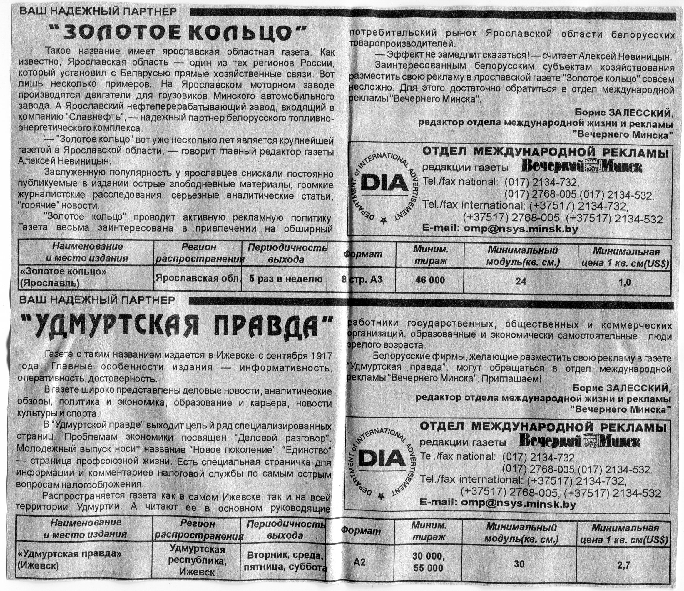 Залесский, Б. "Удмуртская правда" / Б. Залесский // Вечерний Минск. – 1998. – 5 окт.