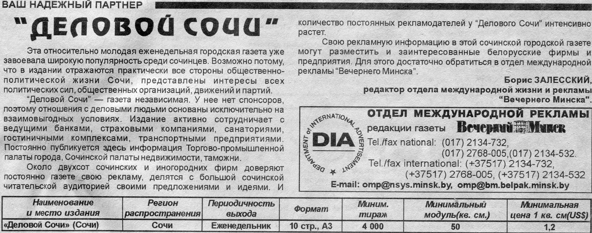 Залесский, Б. "Деловой Сочи" / Б. Залесский // Вечерний Минск. – 1998. – 14 сент.