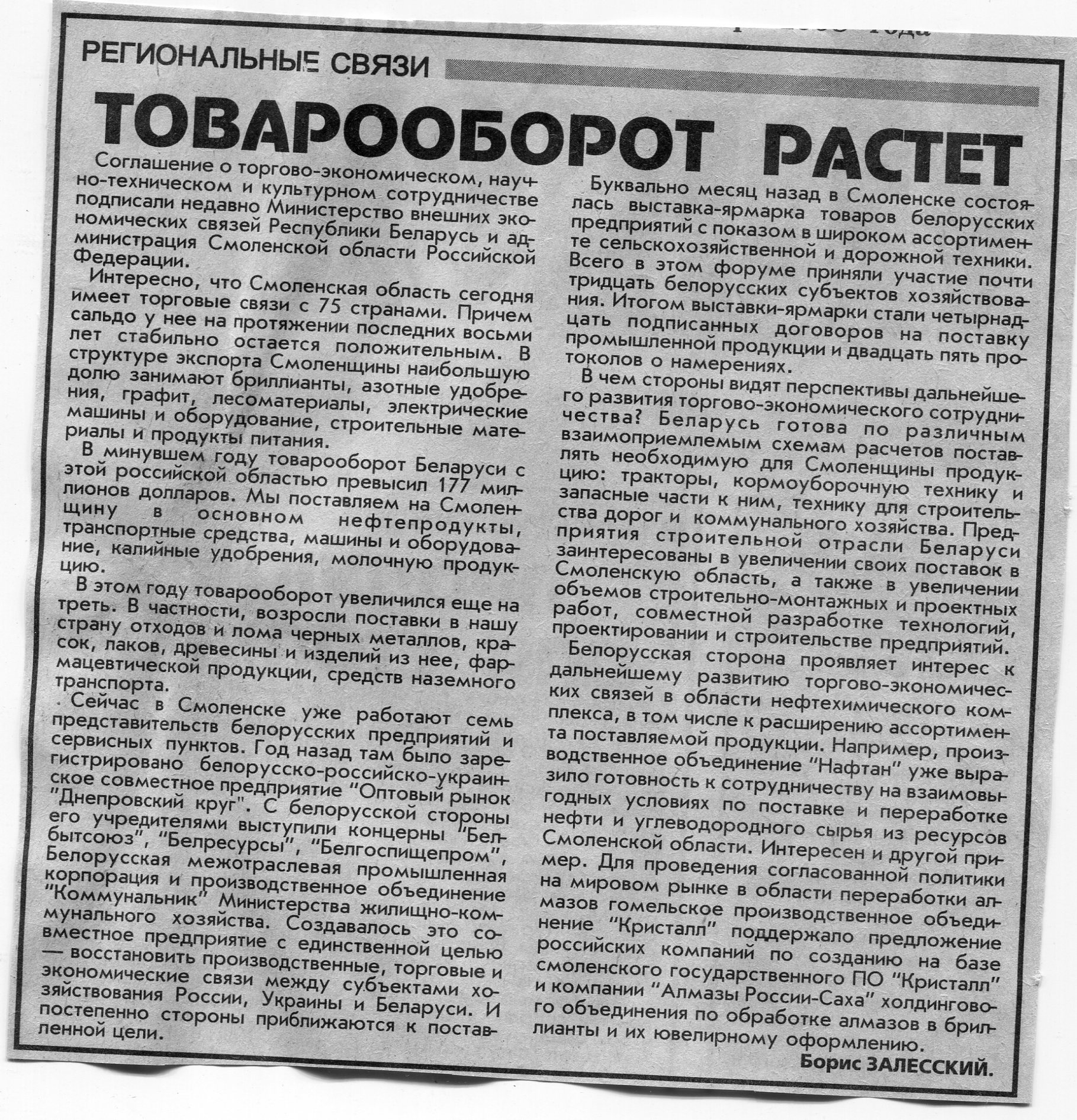 Залесский, Б. Товарооборот растет / Б. Залесский // Вечерний Минск. - 1998. - 19 нояб.
