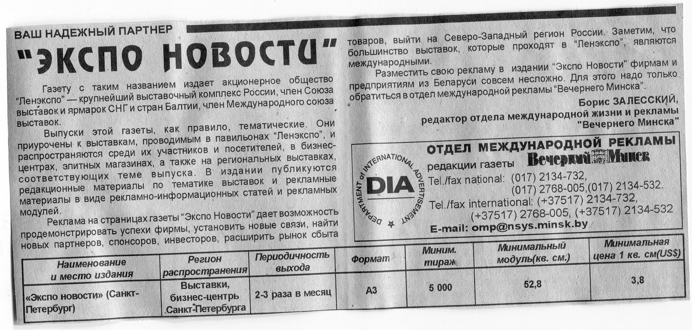 Залесский, Б. "Экспо Новости" / Б. Залесский // Вечерний Минск. – 1998. – 1 окт.