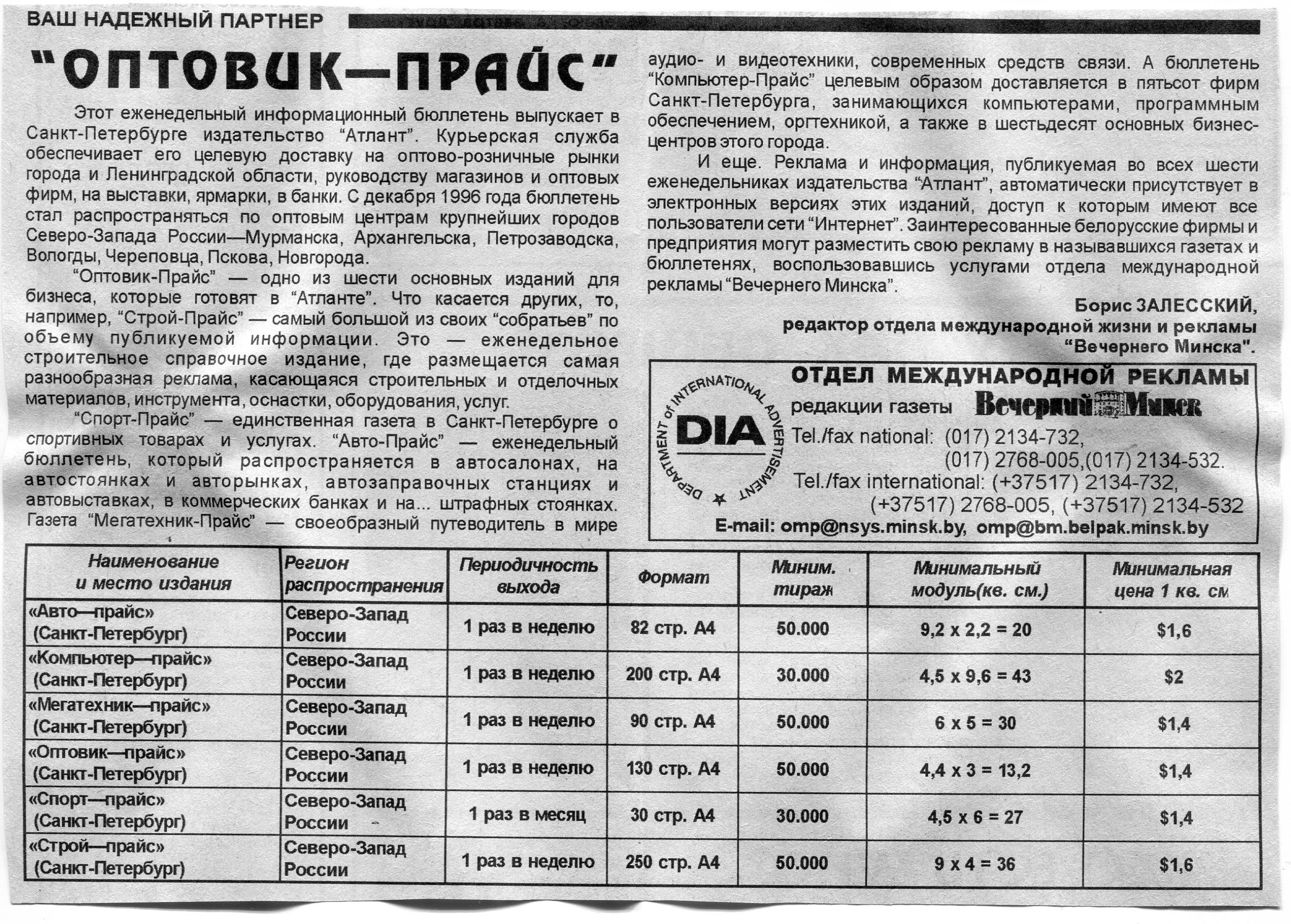 Залесский, Б. "Оптовик-прайс" / Б. Залесский // Вечерний Минск. – 1998. – 5 янв.