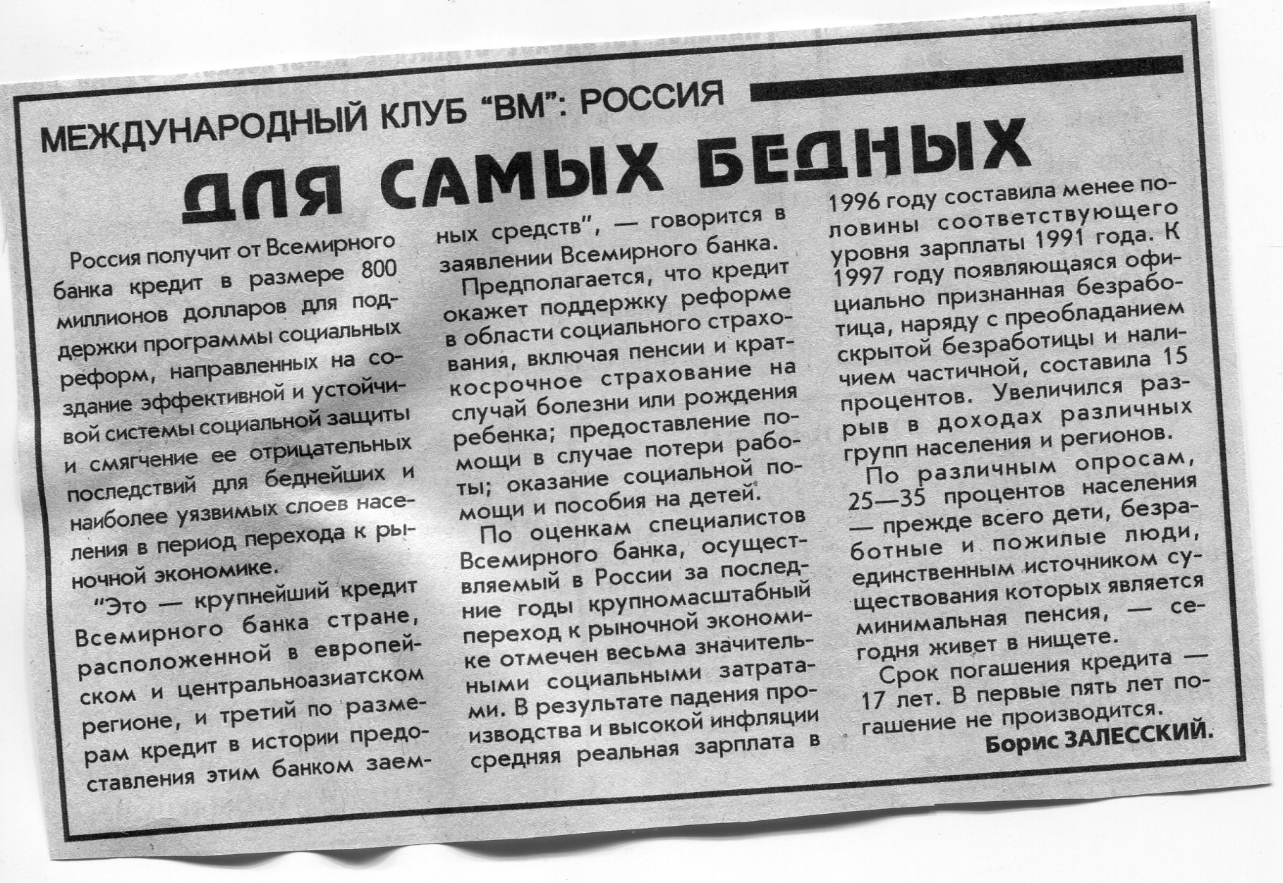 Залесский, Б. Для самых бедных / Б. Залесский // Вечерний Минск. - 1997. - 7 сент.