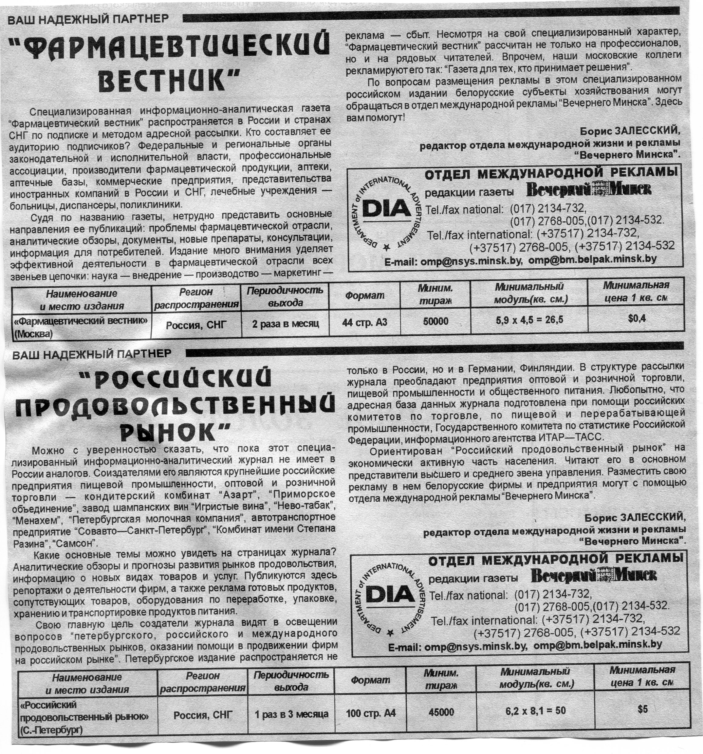 Залесский, Б. "Российский продовольственный рынок" / Б. Залесский // Вечерний Минск. – 1998. – 6 янв.